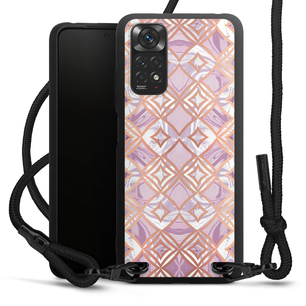 We use the solid direct print process for this phone case, which is why the print area only covers the back and the edge remains unprinted. The case to wear around your neck can be ordered unprinted, fully printed, or partially printed. For your design, either choose one of our exclusive shop motifs or get creative and create your own design, for example with photos and overlays. Design your own personal trend accessory and make an individual statement on the streets!