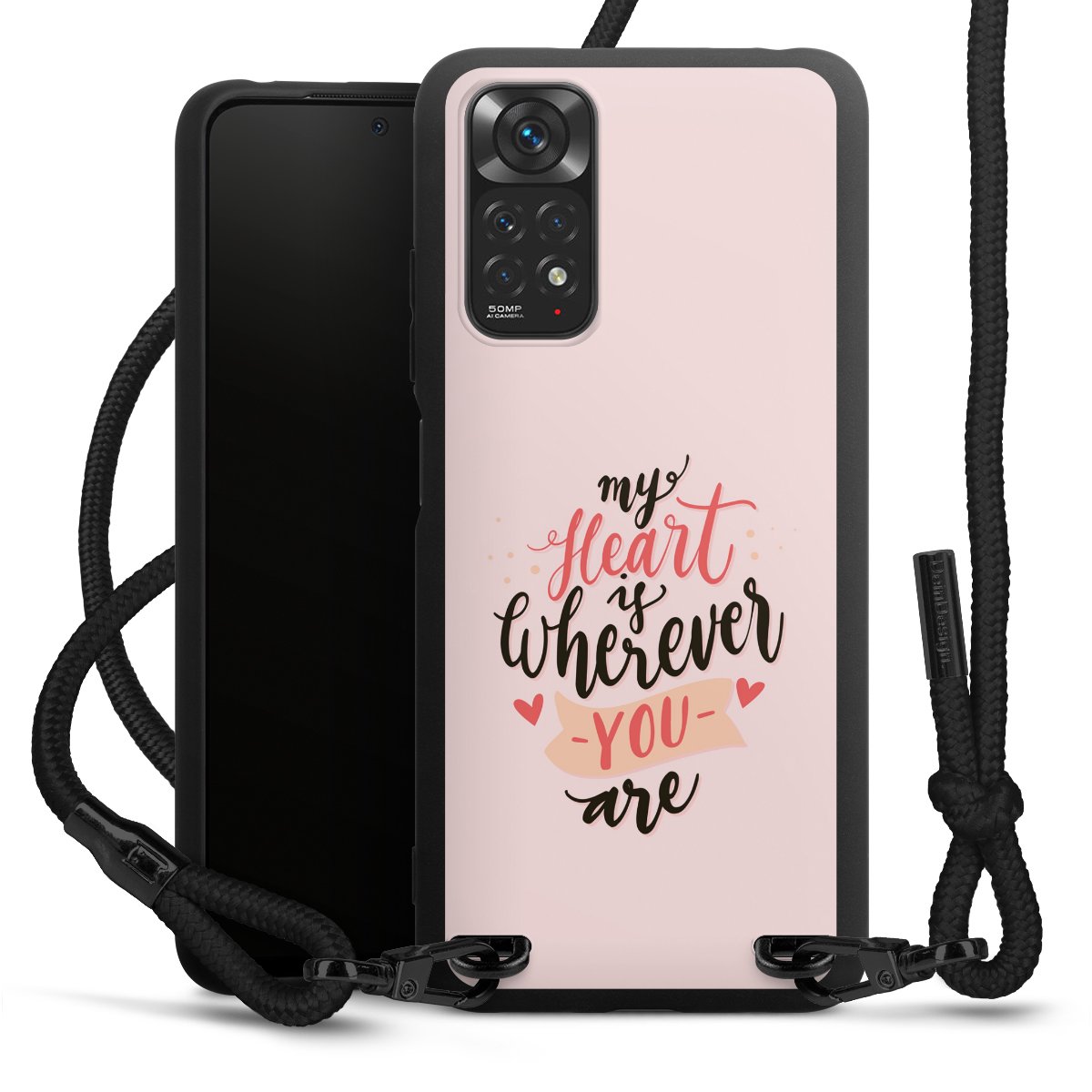 We use the solid direct print process for this phone case, which is why the print area only covers the back and the edge remains unprinted. The case to wear around your neck can be ordered unprinted, fully printed, or partially printed. For your design, either choose one of our exclusive shop motifs or get creative and create your own design, for example with photos and overlays. Design your own personal trend accessory and make an individual statement on the streets!