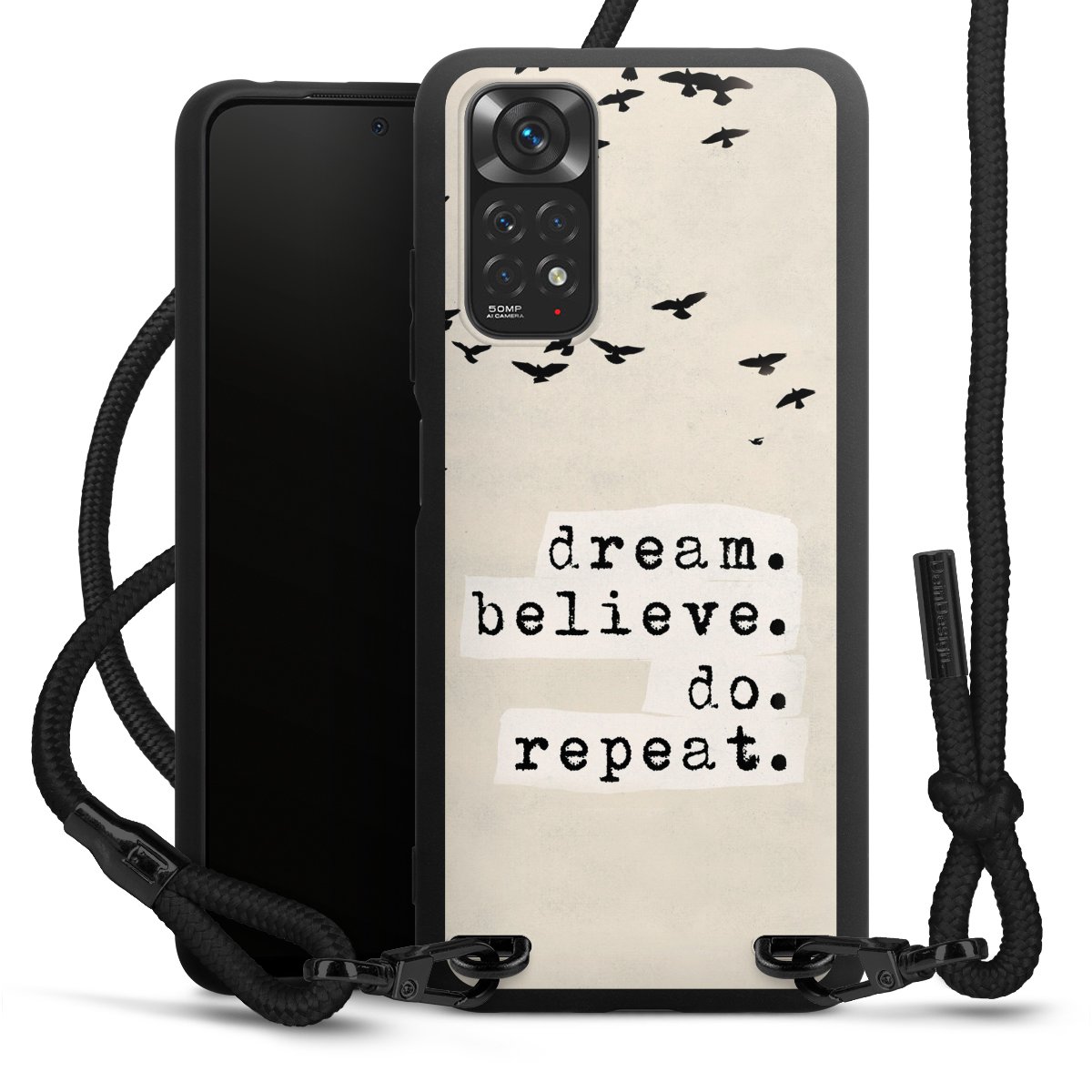 We use the solid direct print process for this phone case, which is why the print area only covers the back and the edge remains unprinted. The case to wear around your neck can be ordered unprinted, fully printed, or partially printed. For your design, either choose one of our exclusive shop motifs or get creative and create your own design, for example with photos and overlays. Design your own personal trend accessory and make an individual statement on the streets!