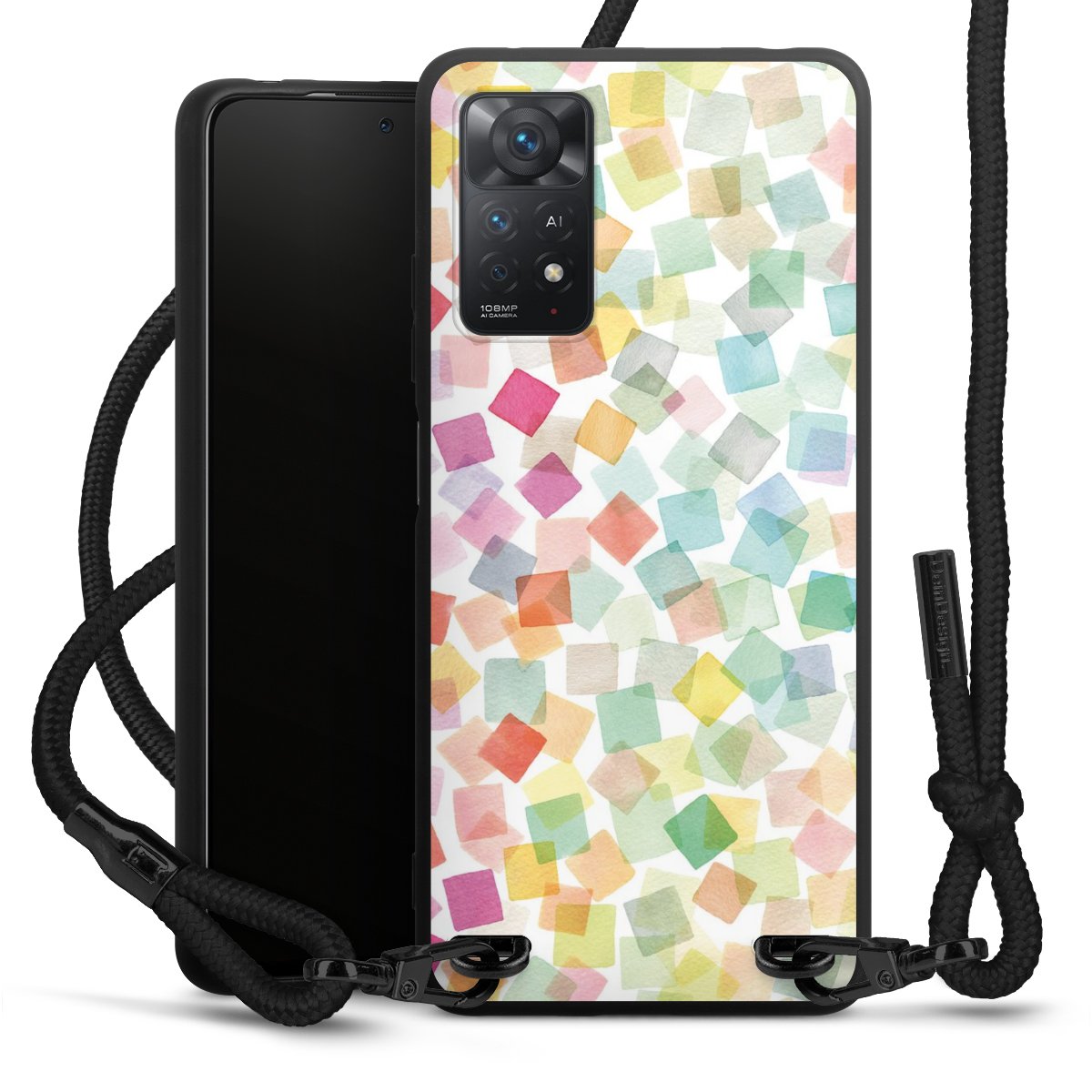 We use the solid direct print process for this phone case, which is why the print area only covers the back and the edge remains unprinted. The case to wear around your neck can be ordered unprinted, fully printed, or partially printed. For your design, either choose one of our exclusive shop motifs or get creative and create your own design, for example with photos and overlays. Design your own personal trend accessory and make an individual statement on the streets!