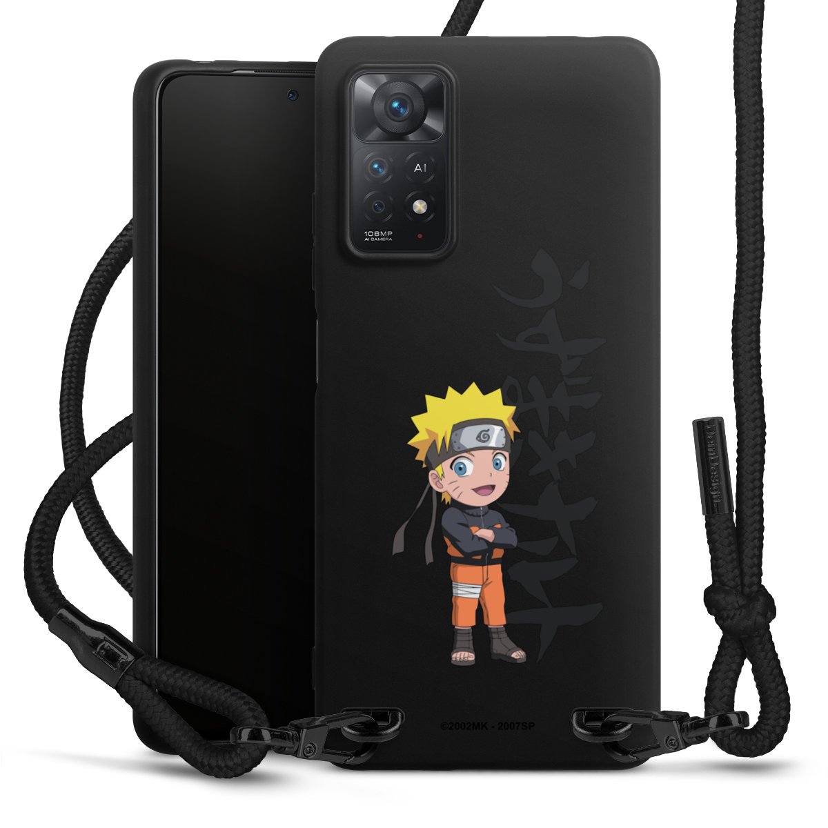 The matt black silicone case is made of flexible TPU (thermoplastic polyurethane) and offers robust protection. The durable, unbreakable material makes the cover flexible and dimensionally stable at the same time. The matte surface makes your design stand out more and is less susceptible to fingerprints and dirt. The stylish trend accessory fits comfortably in the hand and is perfectly complemented by the fabric (polyester) mobile phone strap. The braided fabric strap is approx. 1.70 metres long with a diameter of approx. 0.5 cm. Due to the special knotting technique, the length of the strap can be adjusted by simply pulling it, so that you can adapt it individually to your wishes. The practical case to wear around your neck is available with the fabric strap in black. As a little icing on the cake, we have provided the strap with a chic metal fastener in matt black. The strap is securely fastened to the case with loops made of high-quality genuine leather and press studs. The ends of the fabric strap are covered with metallic end caps and thus protected from fraying.