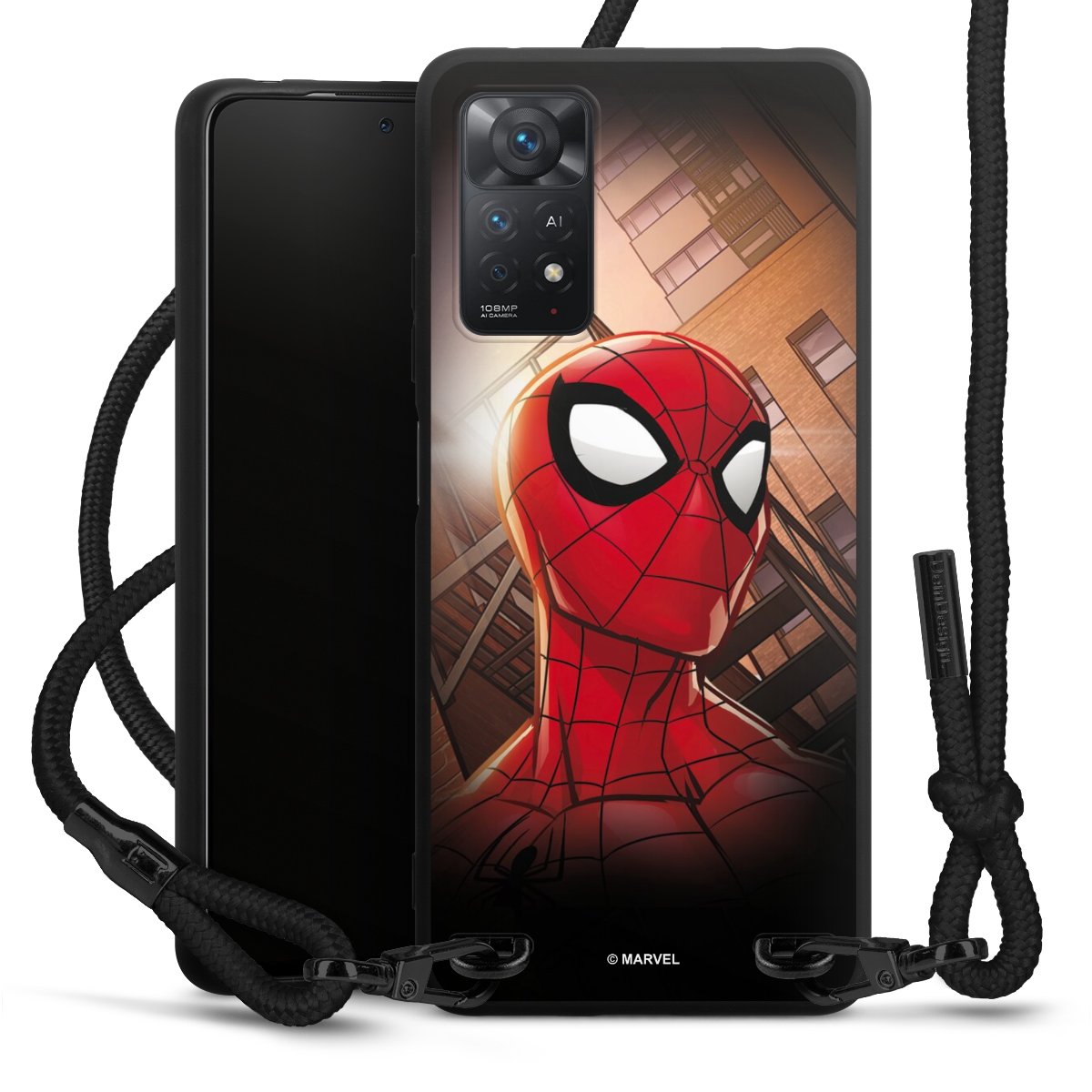 The matt black silicone case is made of flexible TPU (thermoplastic polyurethane) and offers robust protection. The durable, unbreakable material makes the cover flexible and dimensionally stable at the same time. The matte surface makes your design stand out more and is less susceptible to fingerprints and dirt. The stylish trend accessory fits comfortably in the hand and is perfectly complemented by the fabric (polyester) mobile phone strap. The braided fabric strap is approx. 1.70 metres long with a diameter of approx. 0.5 cm. Due to the special knotting technique, the length of the strap can be adjusted by simply pulling it, so that you can adapt it individually to your wishes. The practical case to wear around your neck is available with the fabric strap in black. As a little icing on the cake, we have provided the strap with a chic metal fastener in matt black. The strap is securely fastened to the case with loops made of high-quality genuine leather and press studs. The ends of the fabric strap are covered with metallic end caps and thus protected from fraying.