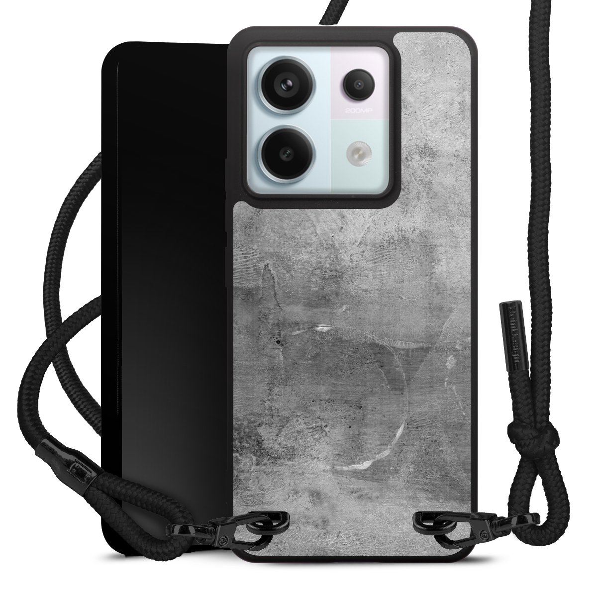 Pure Black: Phone case, fabric strap and metal details in stylish matt black.