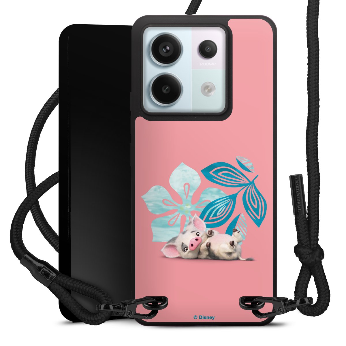 The matt black silicone case is made of flexible TPU (thermoplastic polyurethane) and offers robust protection. The durable, unbreakable material makes the cover flexible and dimensionally stable at the same time. The matte surface makes your design stand out more and is less susceptible to fingerprints and dirt. The stylish trend accessory fits comfortably in the hand and is perfectly complemented by the fabric (polyester) mobile phone strap. The braided fabric strap is approx. 1.70 metres long with a diameter of approx. 0.5 cm. Due to the special knotting technique, the length of the strap can be adjusted by simply pulling it, so that you can adapt it individually to your wishes. The practical case to wear around your neck is available with the fabric strap in black. As a little icing on the cake, we have provided the strap with a chic metal fastener in matt black. The strap is securely fastened to the case with loops made of high-quality genuine leather and press studs. The ends of the fabric strap are covered with metallic end caps and thus protected from fraying.