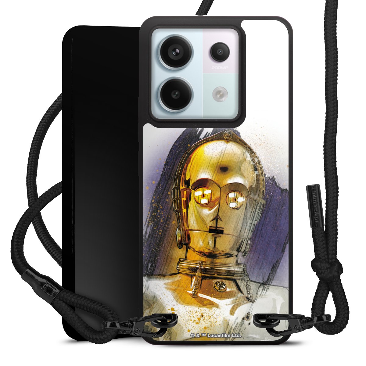 Pure Black: Phone case, fabric strap and metal details in stylish matt black.