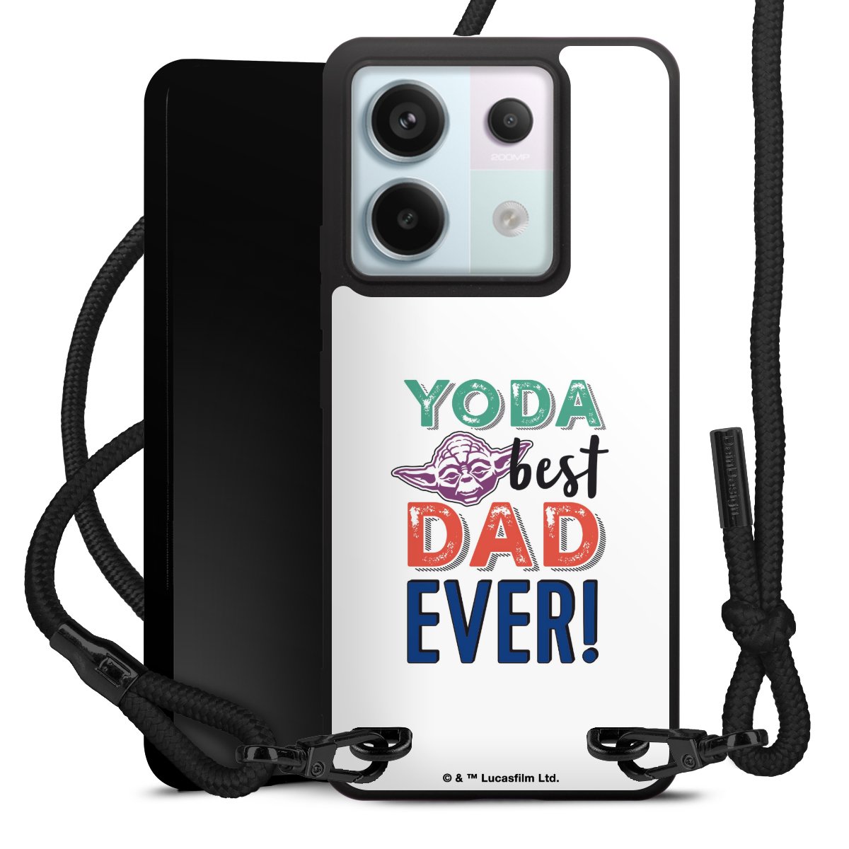 The matt black silicone case is made of flexible TPU (thermoplastic polyurethane) and offers robust protection. The durable, unbreakable material makes the cover flexible and dimensionally stable at the same time. The matte surface makes your design stand out more and is less susceptible to fingerprints and dirt. The stylish trend accessory fits comfortably in the hand and is perfectly complemented by the fabric (polyester) mobile phone strap. The braided fabric strap is approx. 1.70 metres long with a diameter of approx. 0.5 cm. Due to the special knotting technique, the length of the strap can be adjusted by simply pulling it, so that you can adapt it individually to your wishes. The practical case to wear around your neck is available with the fabric strap in black. As a little icing on the cake, we have provided the strap with a chic metal fastener in matt black. The strap is securely fastened to the case with loops made of high-quality genuine leather and press studs. The ends of the fabric strap are covered with metallic end caps and thus protected from fraying.