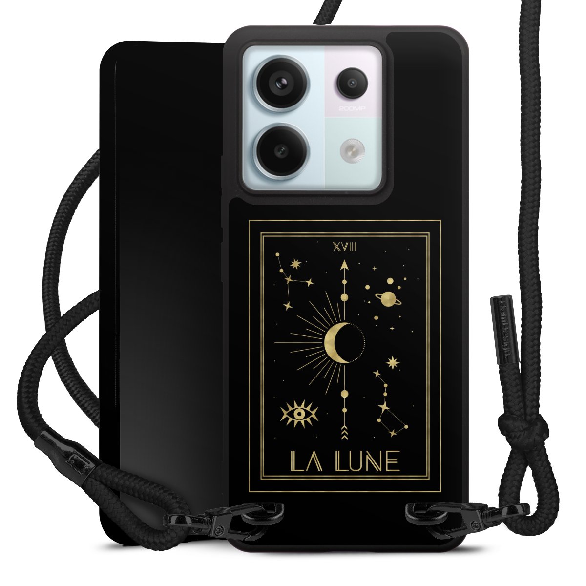 We use the solid direct print process for this phone case, which is why the print area only covers the back and the edge remains unprinted. The case to wear around your neck can be ordered unprinted, fully printed, or partially printed. For your design, either choose one of our exclusive shop motifs or get creative and create your own design, for example with photos and overlays. Design your own personal trend accessory and make an individual statement on the streets!