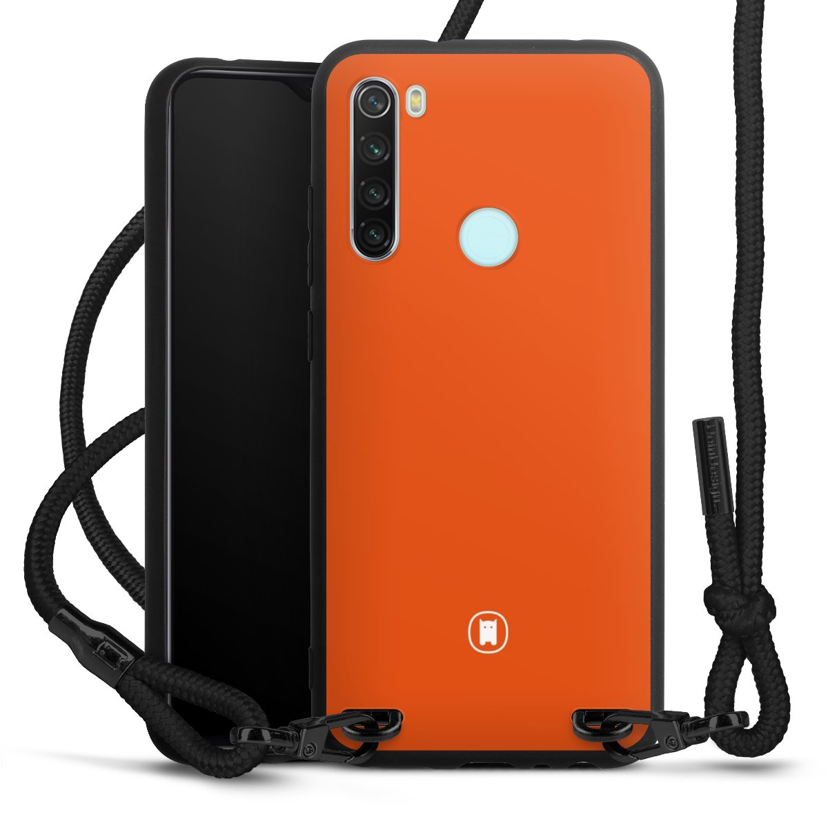 The matt black silicone case is made of flexible TPU (thermoplastic polyurethane) and offers robust protection. The durable, unbreakable material makes the cover flexible and dimensionally stable at the same time. The matte surface makes your design stand out more and is less susceptible to fingerprints and dirt. The stylish trend accessory fits comfortably in the hand and is perfectly complemented by the fabric (polyester) mobile phone strap. The braided fabric strap is approx. 1.70 metres long with a diameter of approx. 0.5 cm. Due to the special knotting technique, the length of the strap can be adjusted by simply pulling it, so that you can adapt it individually to your wishes. The practical case to wear around your neck is available with the fabric strap in black. As a little icing on the cake, we have provided the strap with a chic metal fastener in matt black. The strap is securely fastened to the case with loops made of high-quality genuine leather and press studs. The ends of the fabric strap are covered with metallic end caps and thus protected from fraying.