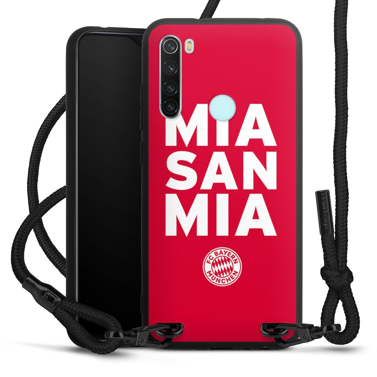 The matt black silicone case is made of flexible TPU (thermoplastic polyurethane) and offers robust protection. The durable, unbreakable material makes the cover flexible and dimensionally stable at the same time. The matte surface makes your design stand out more and is less susceptible to fingerprints and dirt. The stylish trend accessory fits comfortably in the hand and is perfectly complemented by the fabric (polyester) mobile phone strap. The braided fabric strap is approx. 1.70 metres long with a diameter of approx. 0.5 cm. Due to the special knotting technique, the length of the strap can be adjusted by simply pulling it, so that you can adapt it individually to your wishes. The practical case to wear around your neck is available with the fabric strap in black. As a little icing on the cake, we have provided the strap with a chic metal fastener in matt black. The strap is securely fastened to the case with loops made of high-quality genuine leather and press studs. The ends of the fabric strap are covered with metallic end caps and thus protected from fraying.