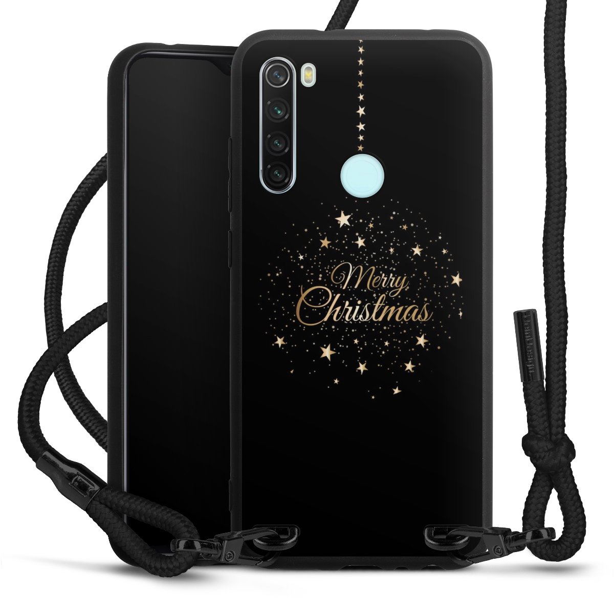 The matt black silicone case is made of flexible TPU (thermoplastic polyurethane) and offers robust protection. The durable, unbreakable material makes the cover flexible and dimensionally stable at the same time. The matte surface makes your design stand out more and is less susceptible to fingerprints and dirt. The stylish trend accessory fits comfortably in the hand and is perfectly complemented by the fabric (polyester) mobile phone strap. The braided fabric strap is approx. 1.70 metres long with a diameter of approx. 0.5 cm. Due to the special knotting technique, the length of the strap can be adjusted by simply pulling it, so that you can adapt it individually to your wishes. The practical case to wear around your neck is available with the fabric strap in black. As a little icing on the cake, we have provided the strap with a chic metal fastener in matt black. The strap is securely fastened to the case with loops made of high-quality genuine leather and press studs. The ends of the fabric strap are covered with metallic end caps and thus protected from fraying.