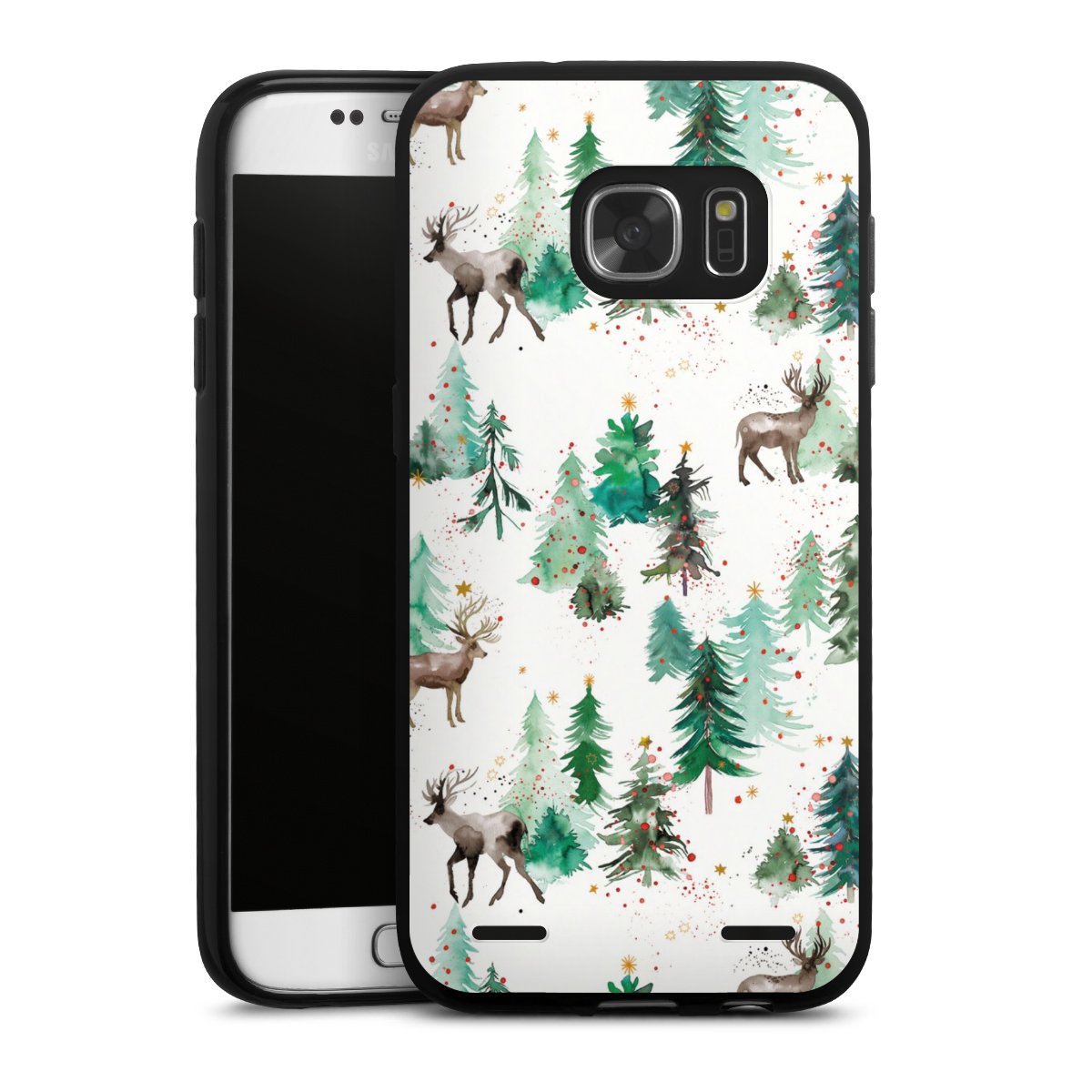 Deers and Winter Xmas Trees