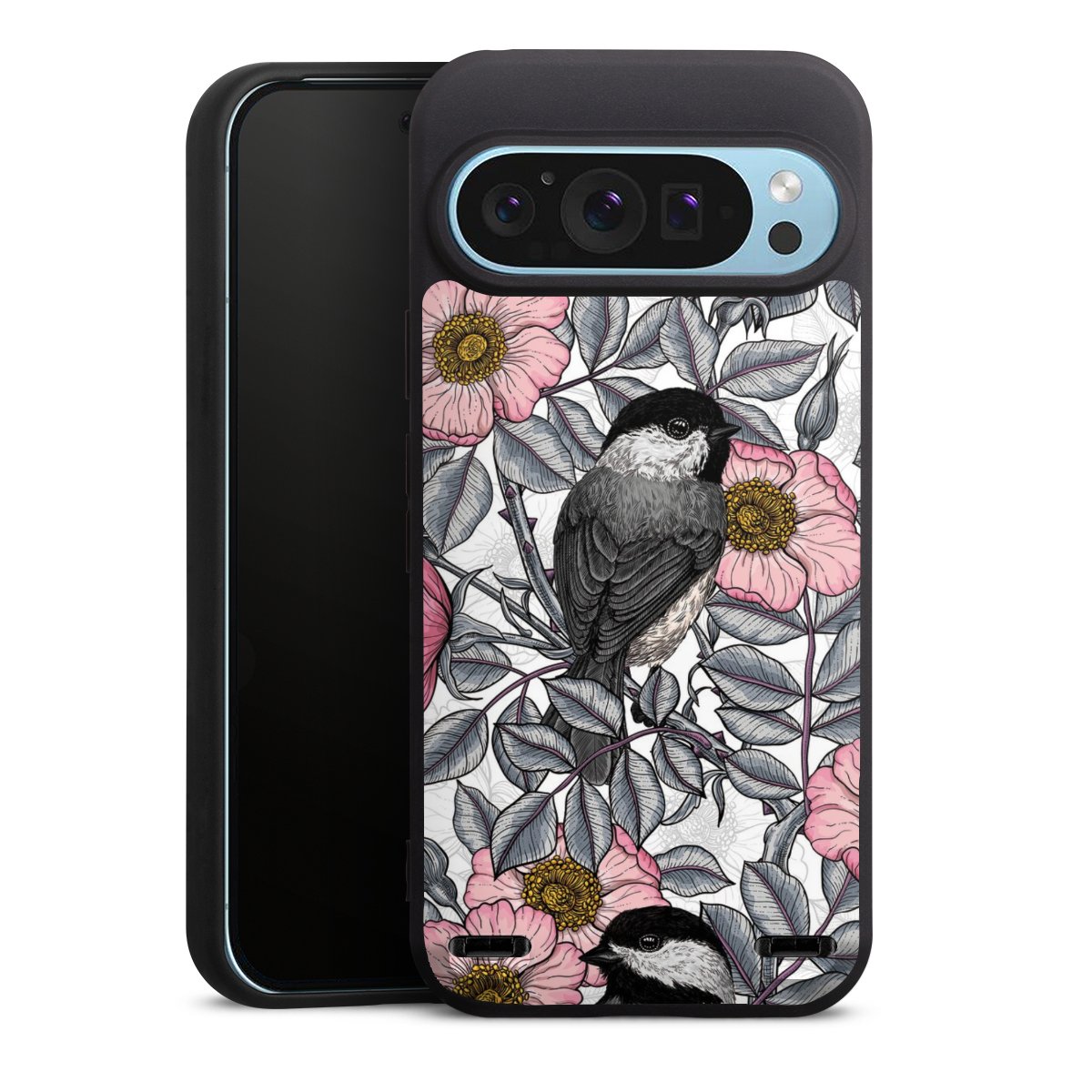 Chickadees and Wild Rose