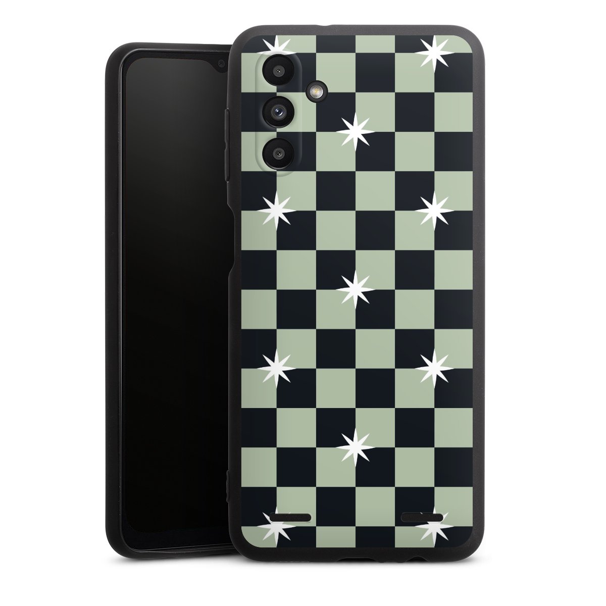 Checked Pattern Black Grey Stars