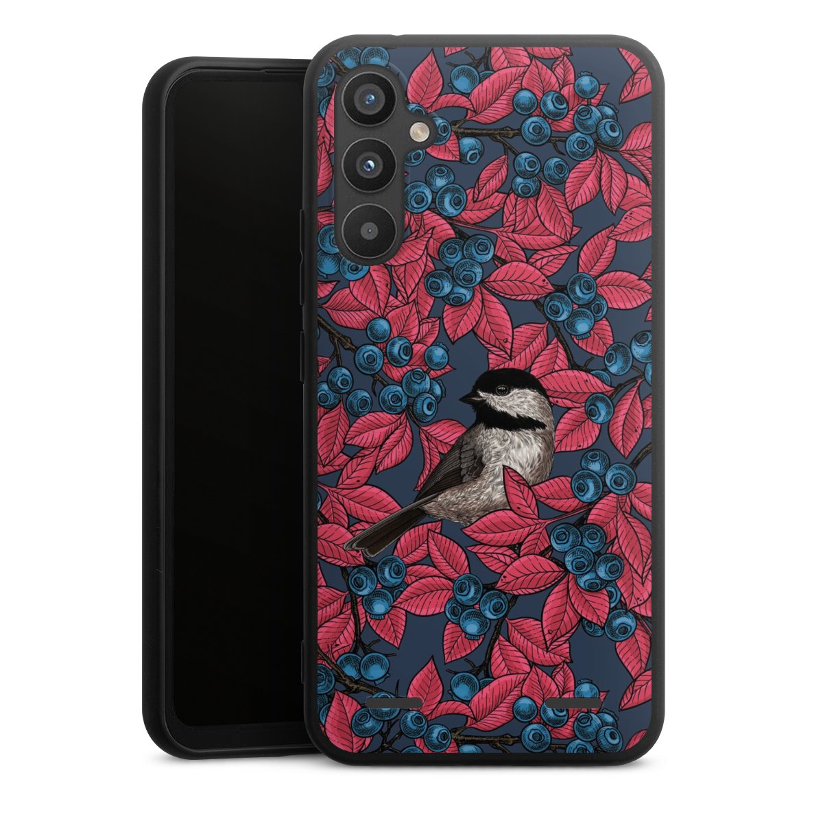 Blueberries And Birds On Navy