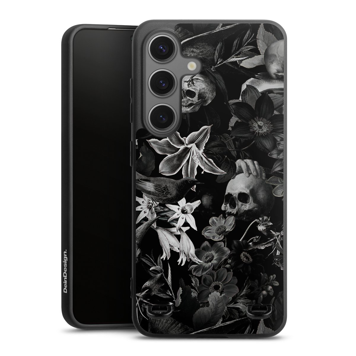 Skulls and Flowers on Black Background