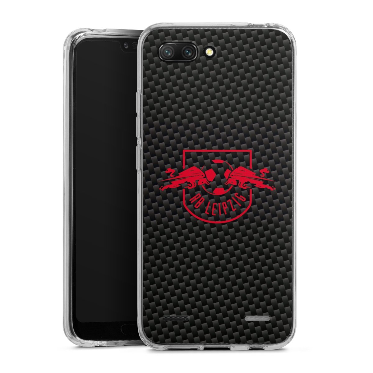 Red RB Leipzig logo on carbon look