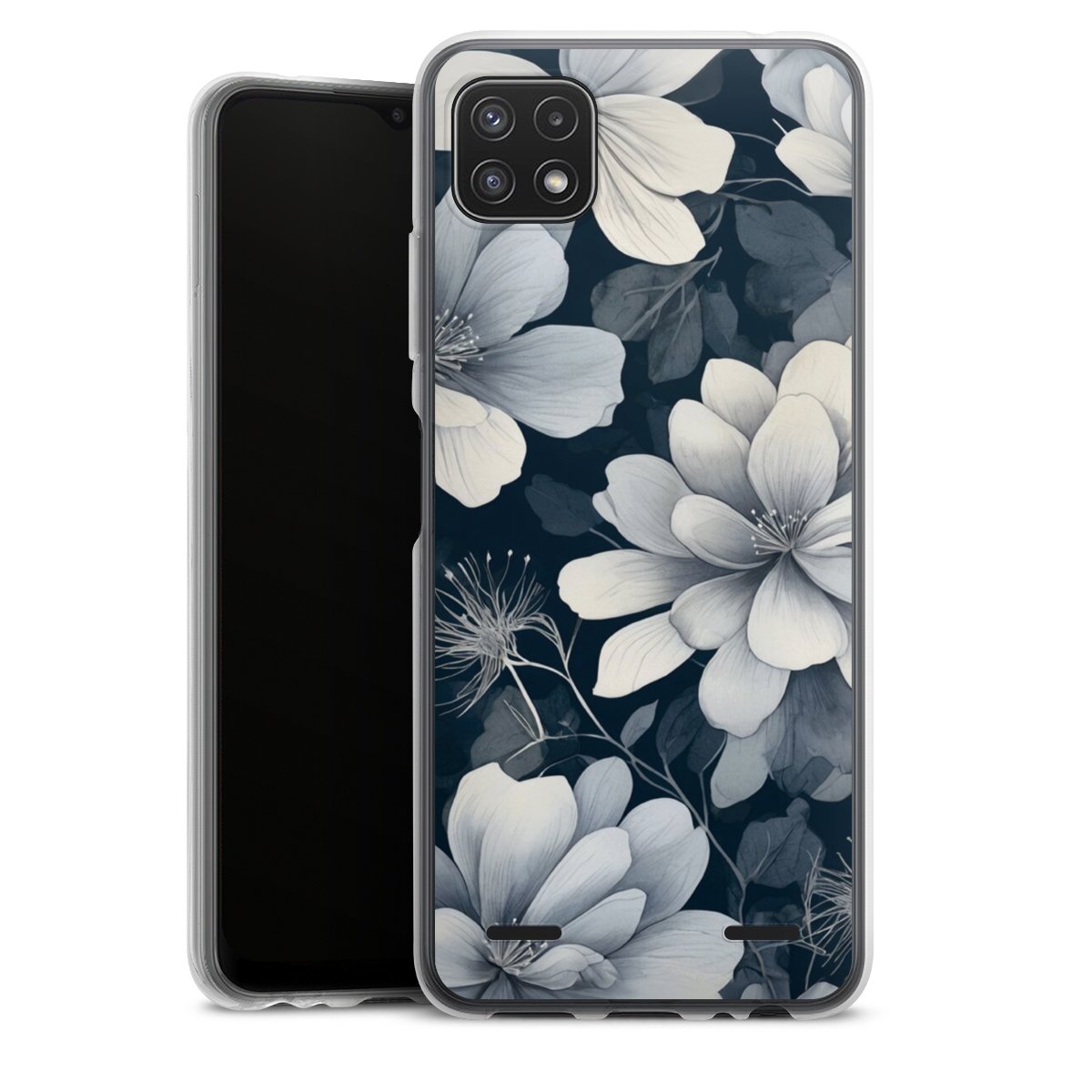 Negative Flower Blue White with AI