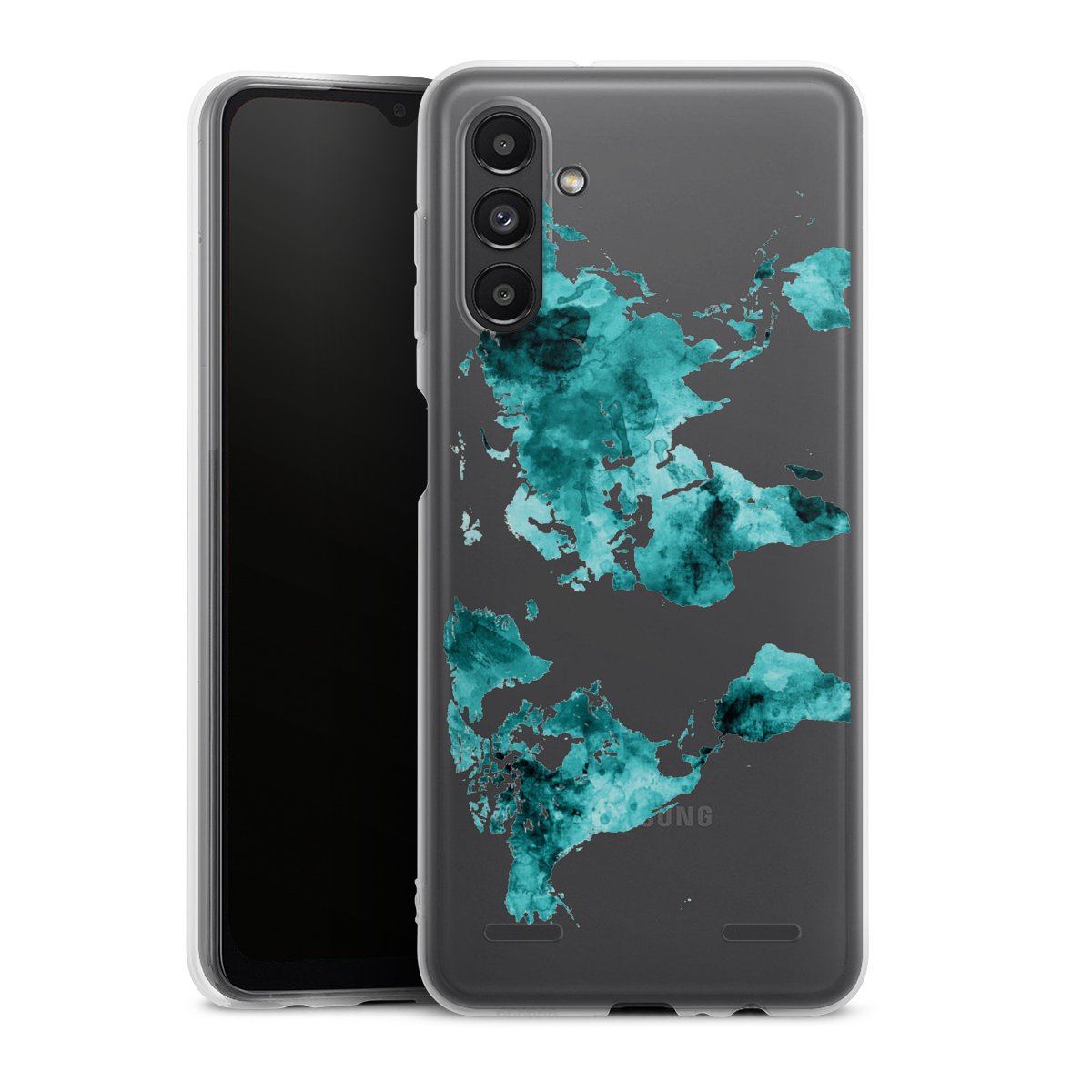 World Map Teal Transparent