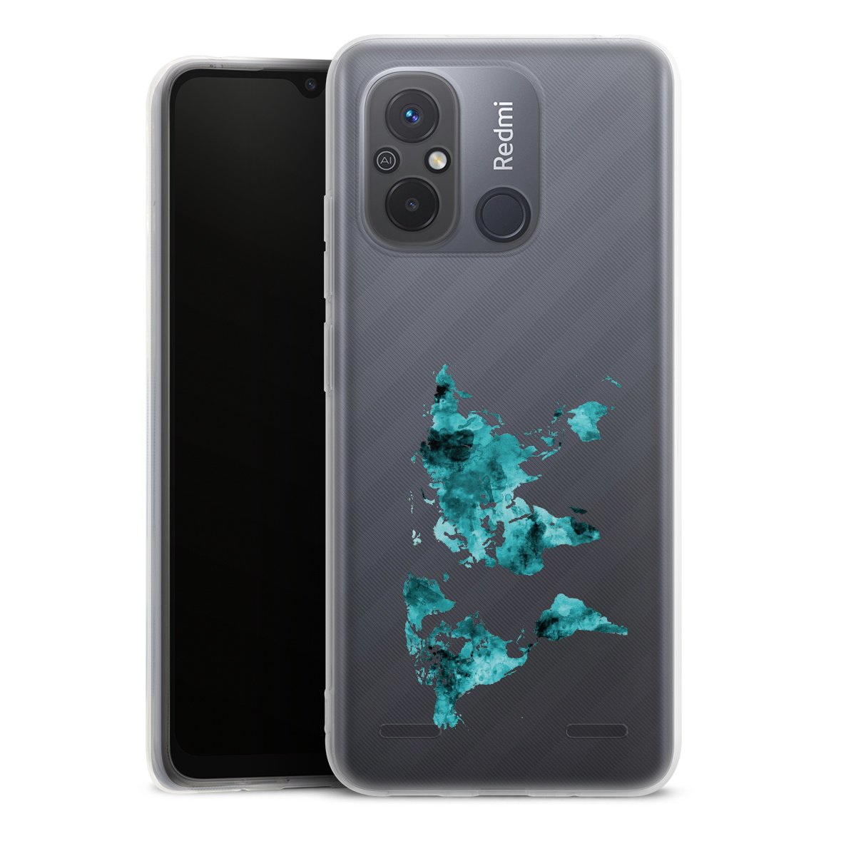 World Map Teal Transparent