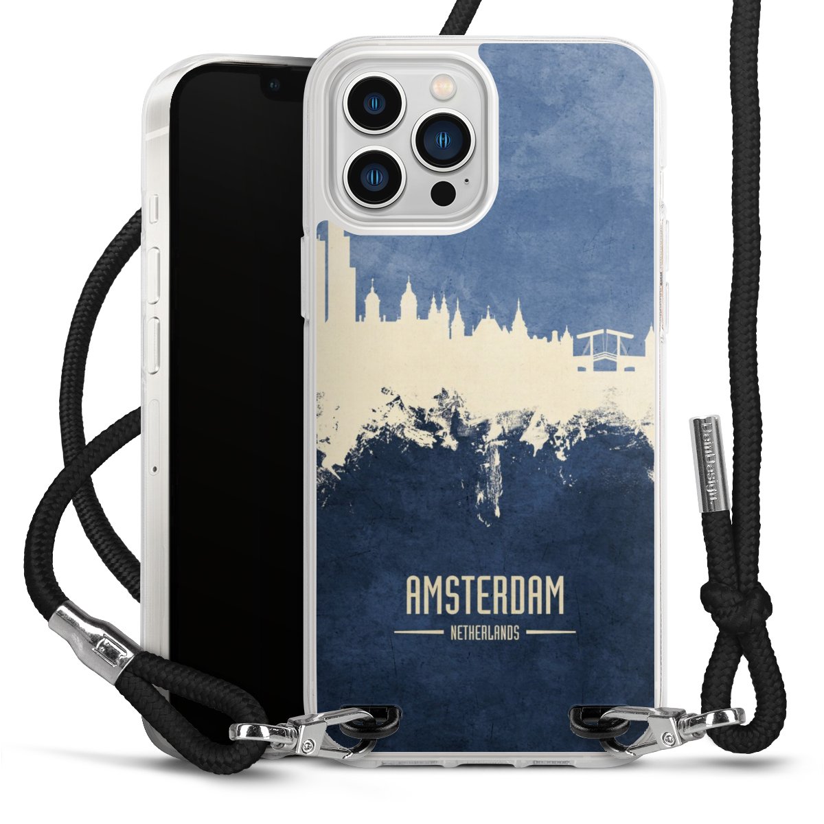 Keep your phone handy at all times, thanks to the flexible silicone case with a textile strap.