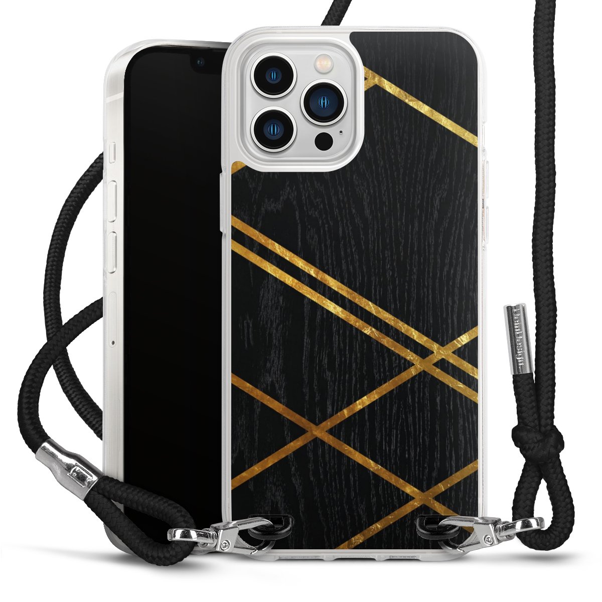 Black Geometric Pattern Golden Stripes