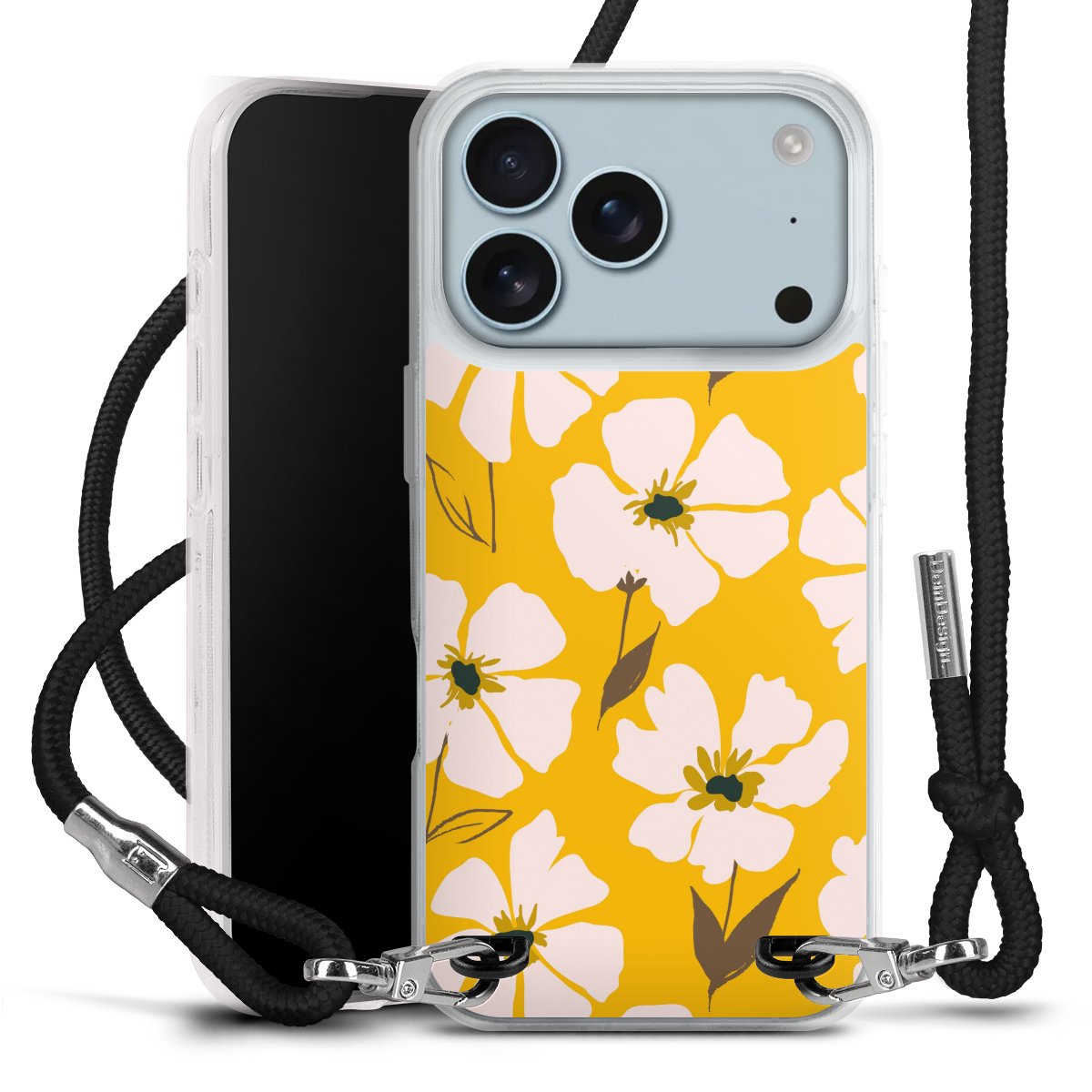 Keep your phone handy at all times, thanks to the flexible silicone case with a textile strap.