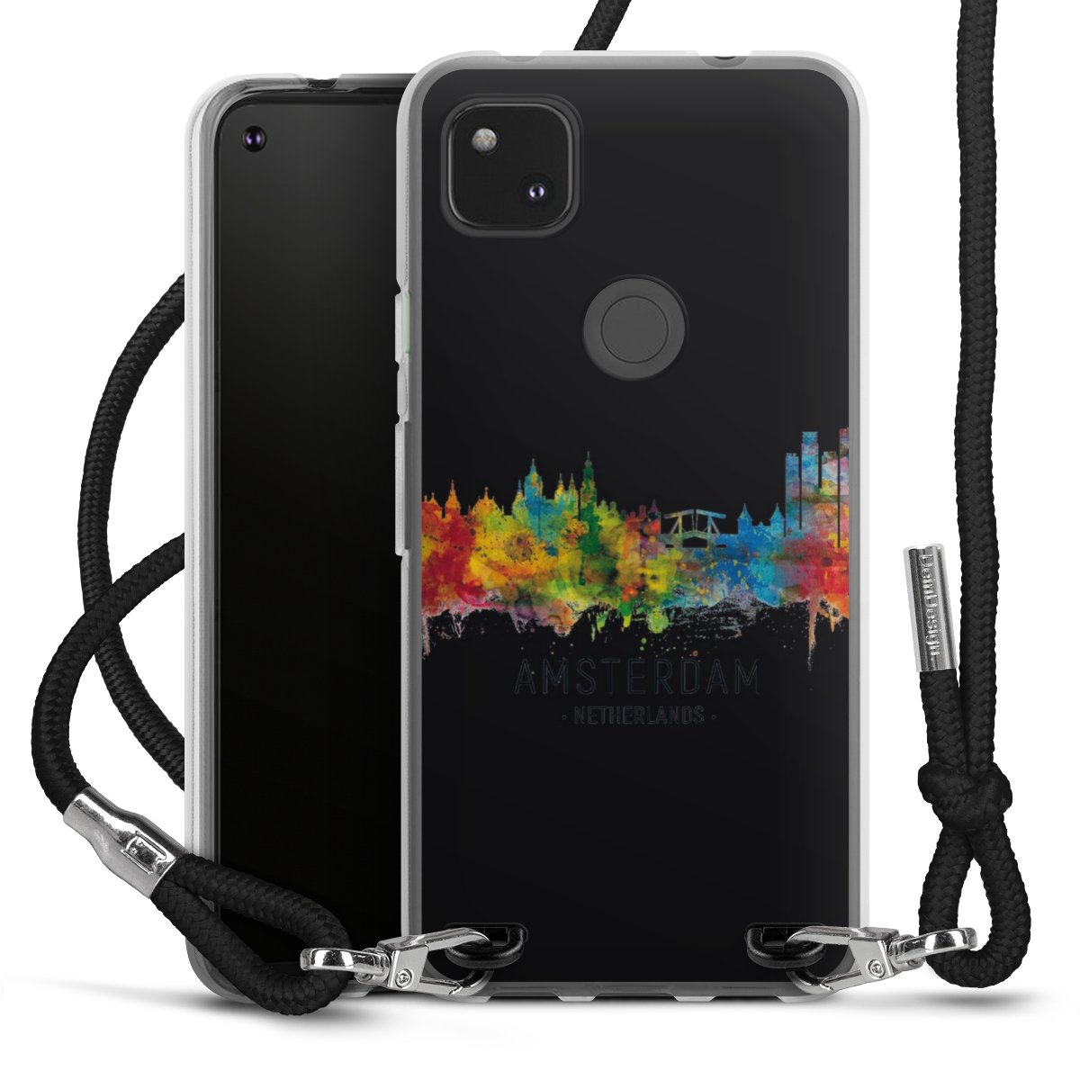 Keep your phone handy at all times, thanks to the flexible silicone case with a textile strap.