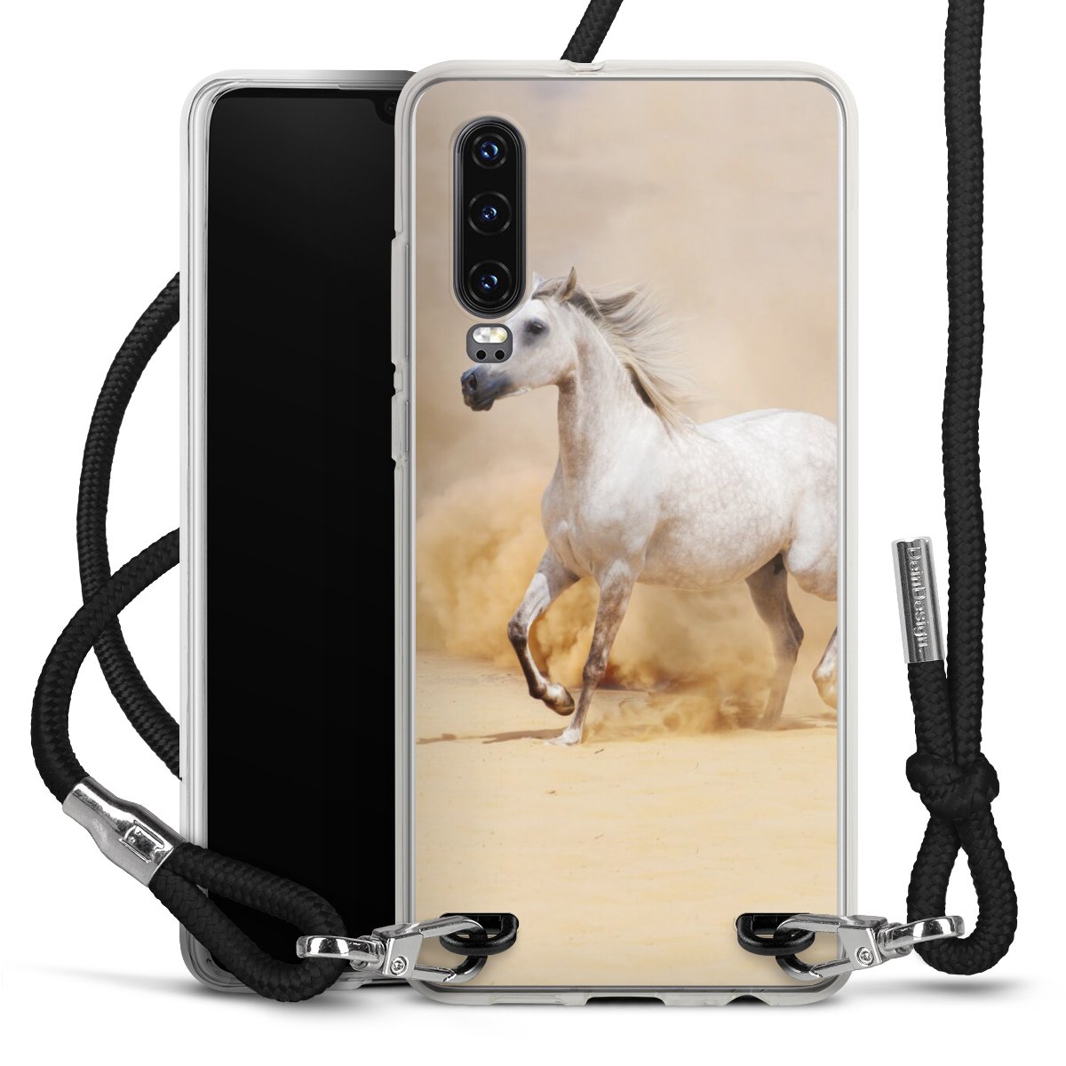 Keep your phone handy at all times, thanks to the flexible silicone case with a textile strap.