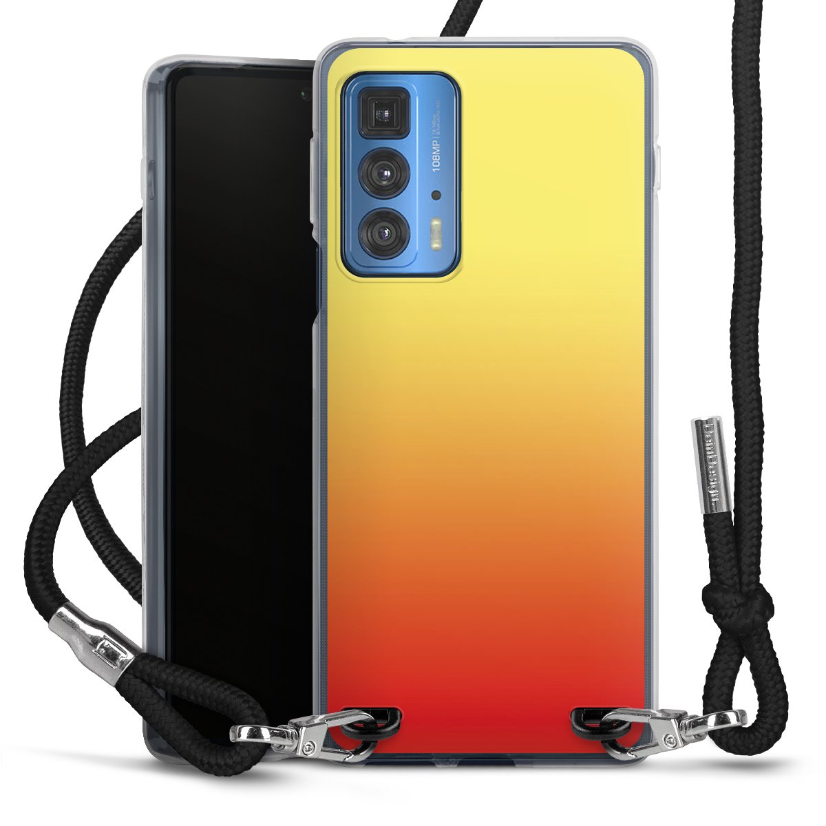 The flexible case is made from a high quality TPU material (thermoplastic Polyurethan). Thanks to its long-lasting and break resistant characteristics, the case is flexible yet consistent in form and has a great grip and feel. The textile strap made from Polyester gives a chic yet casual accent allowing you to carry your phone like a bag or necklace - a practical gadget perfect for your next adventure. The textile strap is about 1.70 meters long and the length can easily be adjusted through the knots. Our Carry Case is available in black, red, pink, grey, mustard, dark green and royal blue. We added a metal fastening to give the product an elegant touch. The ends of the textile strap are covered with metallic end caps to protect them against fraying.