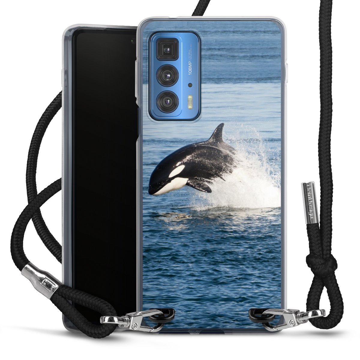 For our Carry Case we are using our advanced direct printing technology. The backside is fully printable, the frame is left unprinted. You can order the phone case without print, printed completely or also with a partial print. Choose one of our exclusive, pre-made shop designs or let your creativity shine and create your very own unique design with your pictures, overlays and text.