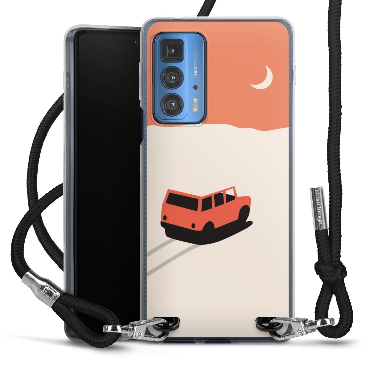 For our Carry Case we are using our advanced direct printing technology. The backside is fully printable, the frame is left unprinted. You can order the phone case without print, printed completely or also with a partial print. Choose one of our exclusive, pre-made shop designs or let your creativity shine and create your very own unique design with your pictures, overlays and text.