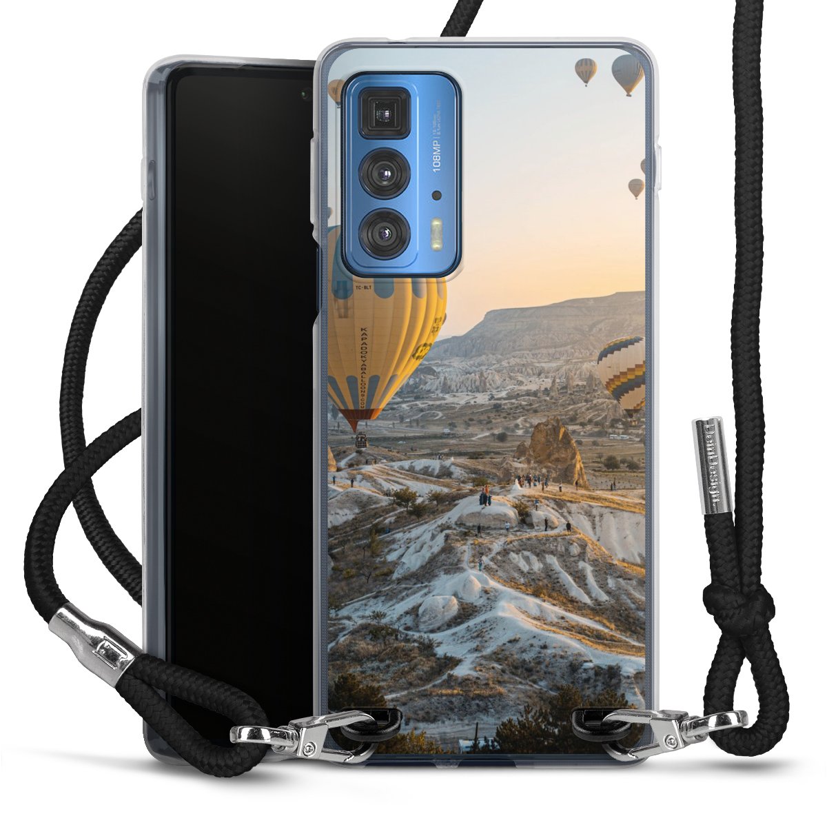 The flexible case is made from a high quality TPU material (thermoplastic Polyurethan). Thanks to its long-lasting and break resistant characteristics, the case is flexible yet consistent in form and has a great grip and feel. The textile strap made from Polyester gives a chic yet casual accent allowing you to carry your phone like a bag or necklace - a practical gadget perfect for your next adventure. The textile strap is about 1.70 meters long and the length can easily be adjusted through the knots. Our Carry Case is available in black, red, pink, grey, mustard, dark green and royal blue. We added a metal fastening to give the product an elegant touch. The ends of the textile strap are covered with metallic end caps to protect them against fraying.