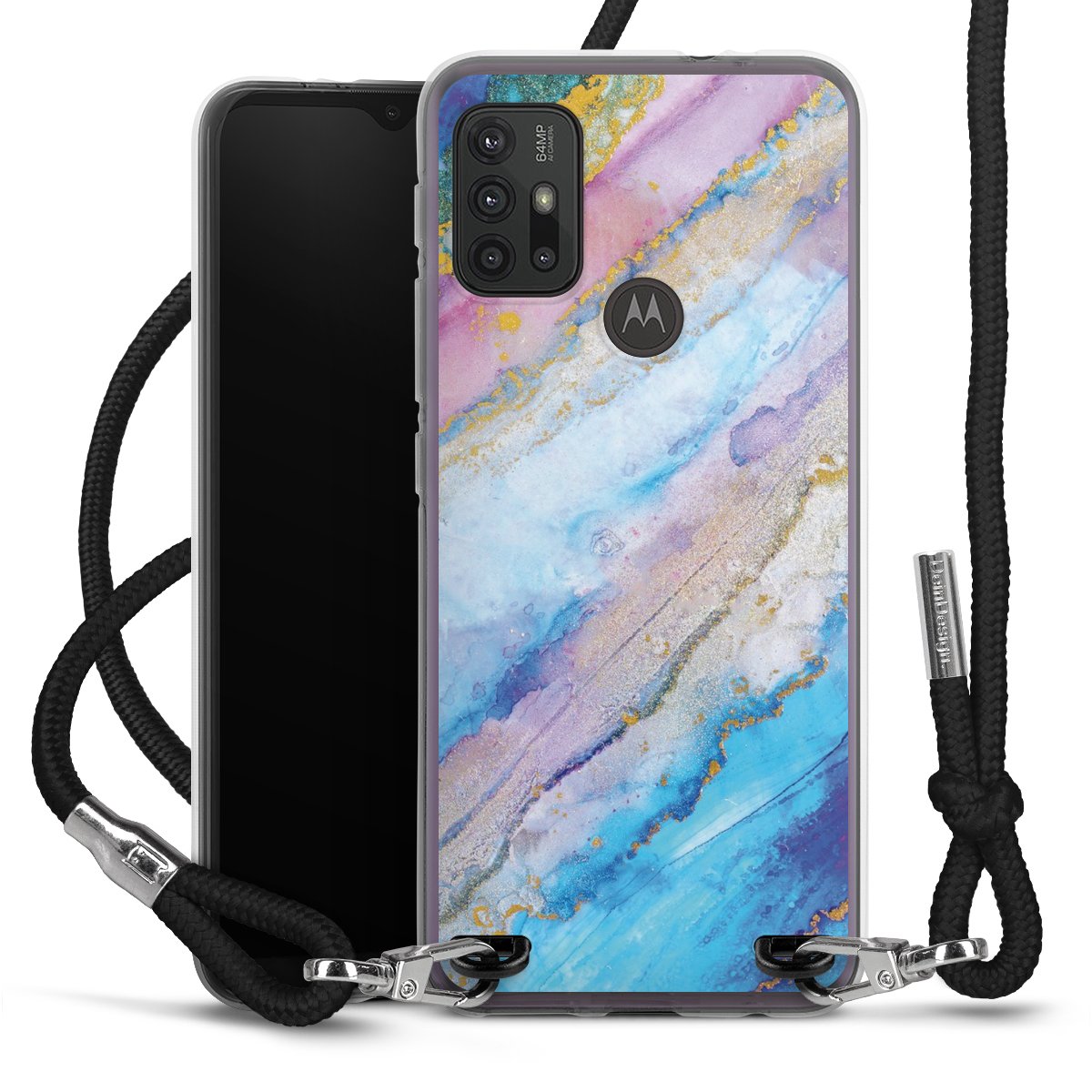 The flexible case is made from a high quality TPU material (thermoplastic Polyurethan). Thanks to its long-lasting and break resistant characteristics, the case is flexible yet consistent in form and has a great grip and feel. The textile strap made from Polyester gives a chic yet casual accent allowing you to carry your phone like a bag or necklace - a practical gadget perfect for your next adventure. The textile strap is about 1.70 meters long and the length can easily be adjusted through the knots. Our Carry Case is available in black, red, pink, grey, mustard, dark green and royal blue. We added a metal fastening to give the product an elegant touch. The ends of the textile strap are covered with metallic end caps to protect them against fraying.