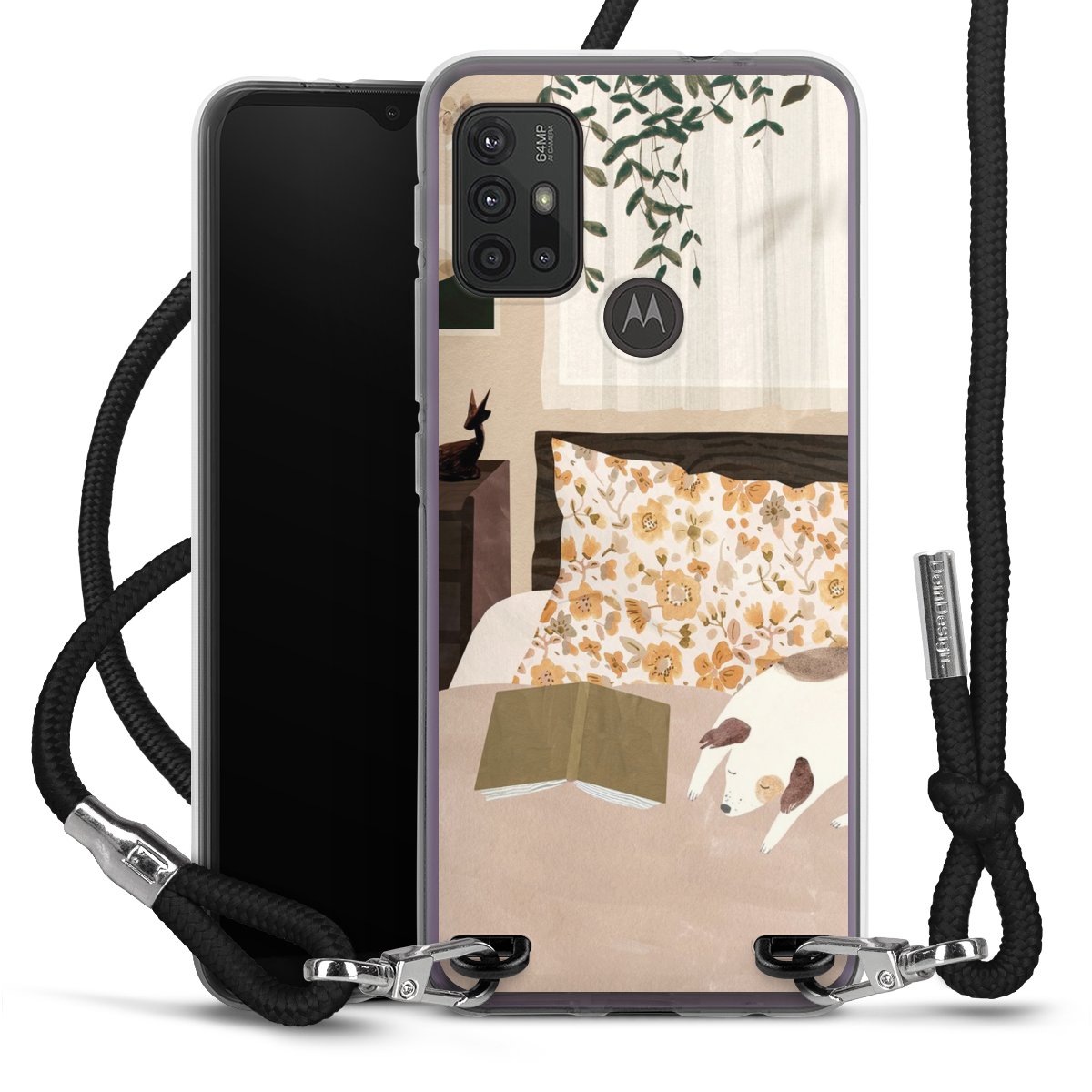 Keep your phone handy at all times, thanks to the flexible silicone case with a textile strap.