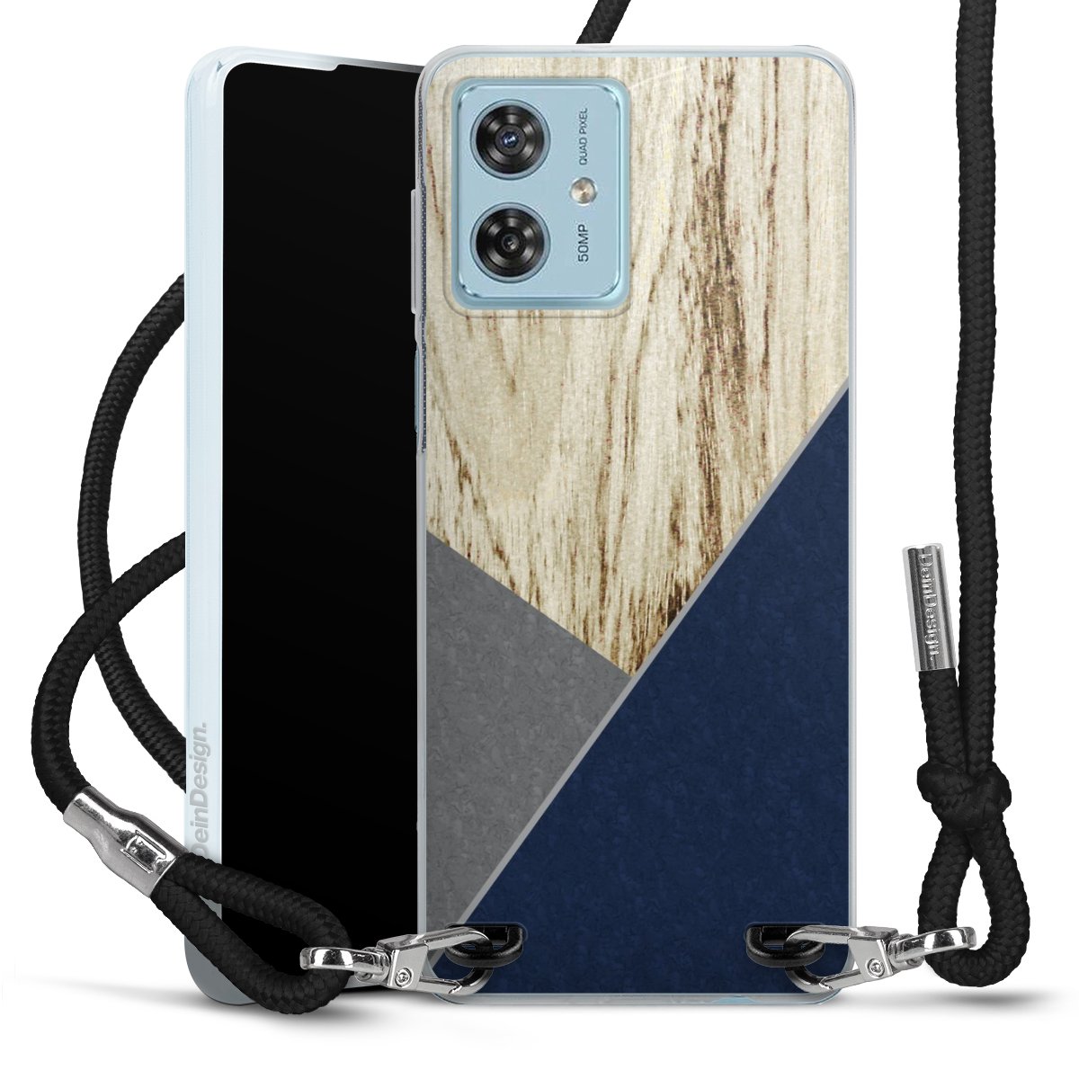 Keep your phone handy at all times, thanks to the flexible silicone case with a textile strap.