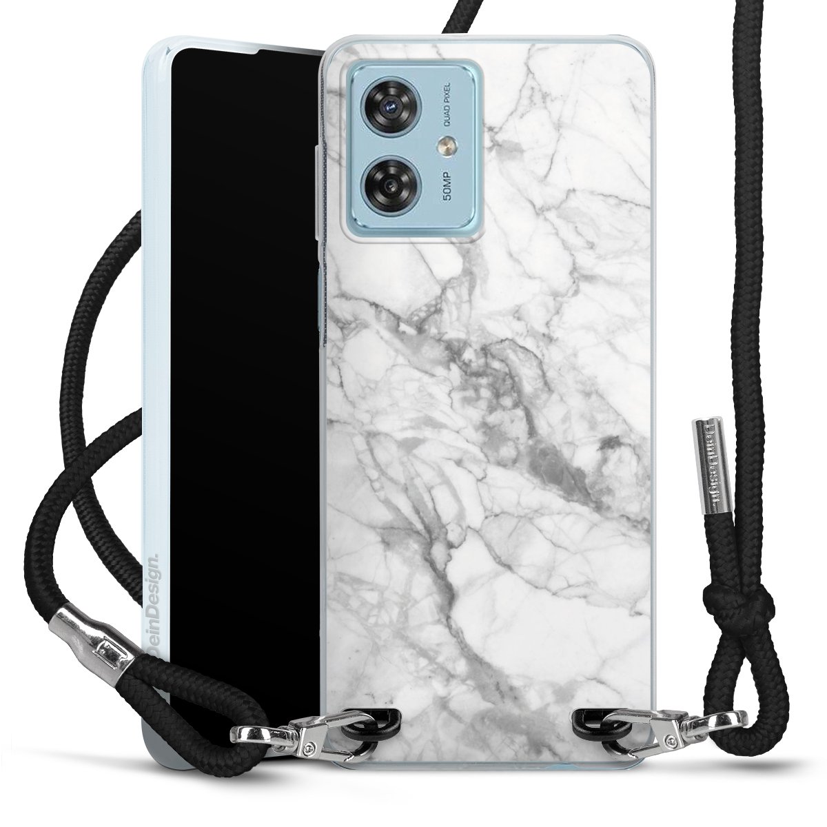 Keep your phone handy at all times, thanks to the flexible silicone case with a textile strap.