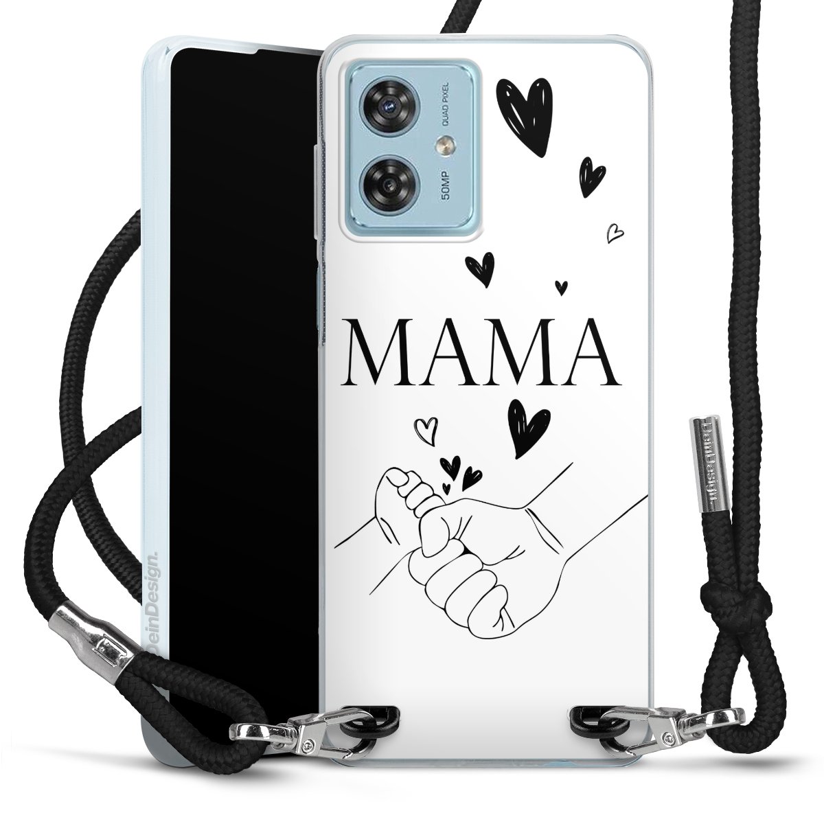 Keep your phone handy at all times, thanks to the flexible silicone case with a textile strap.