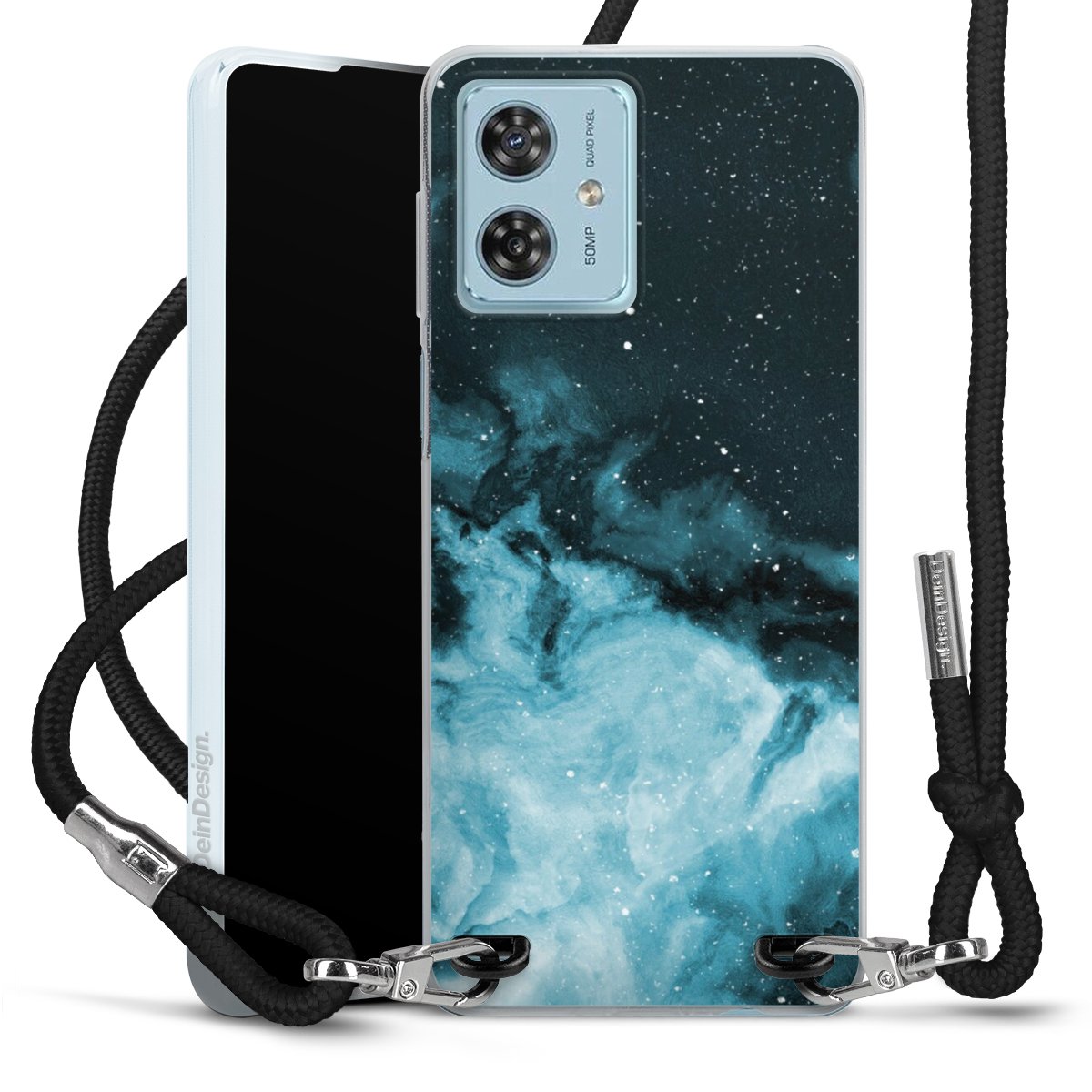 Keep your phone handy at all times, thanks to the flexible silicone case with a textile strap.