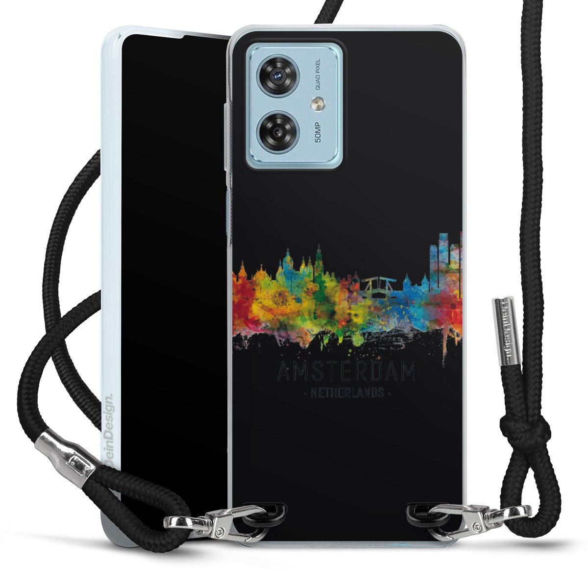 Keep your phone handy at all times, thanks to the flexible silicone case with a textile strap.