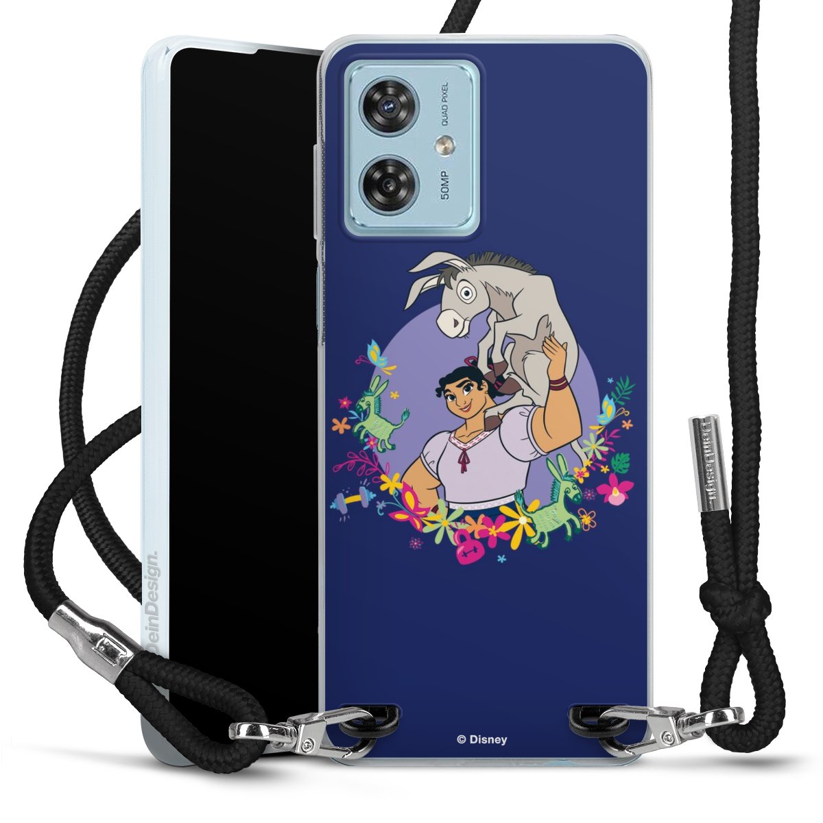 Keep your phone handy at all times, thanks to the flexible silicone case with a textile strap.