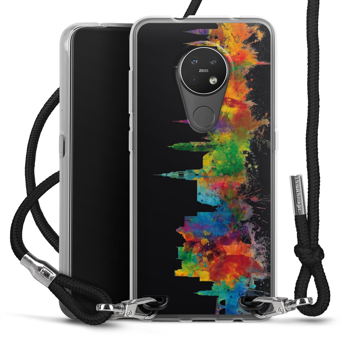 The flexible case is made from a high quality TPU material (thermoplastic Polyurethan). Thanks to its long-lasting and break resistant characteristics, the case is flexible yet consistent in form and has a great grip and feel. The textile strap made from Polyester gives a chic yet casual accent allowing you to carry your phone like a bag or necklace - a practical gadget perfect for your next adventure. The textile strap is about 1.70 meters long and the length can easily be adjusted through the knots. Our Carry Case is available in black, red, pink, grey, mustard, dark green and royal blue. We added a metal fastening to give the product an elegant touch. The ends of the textile strap are covered with metallic end caps to protect them against fraying.