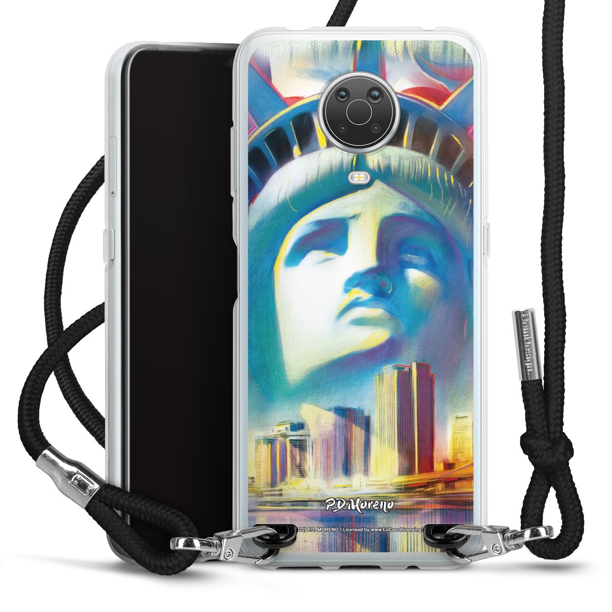 Keep your phone handy at all times, thanks to the flexible silicone case with a textile strap.