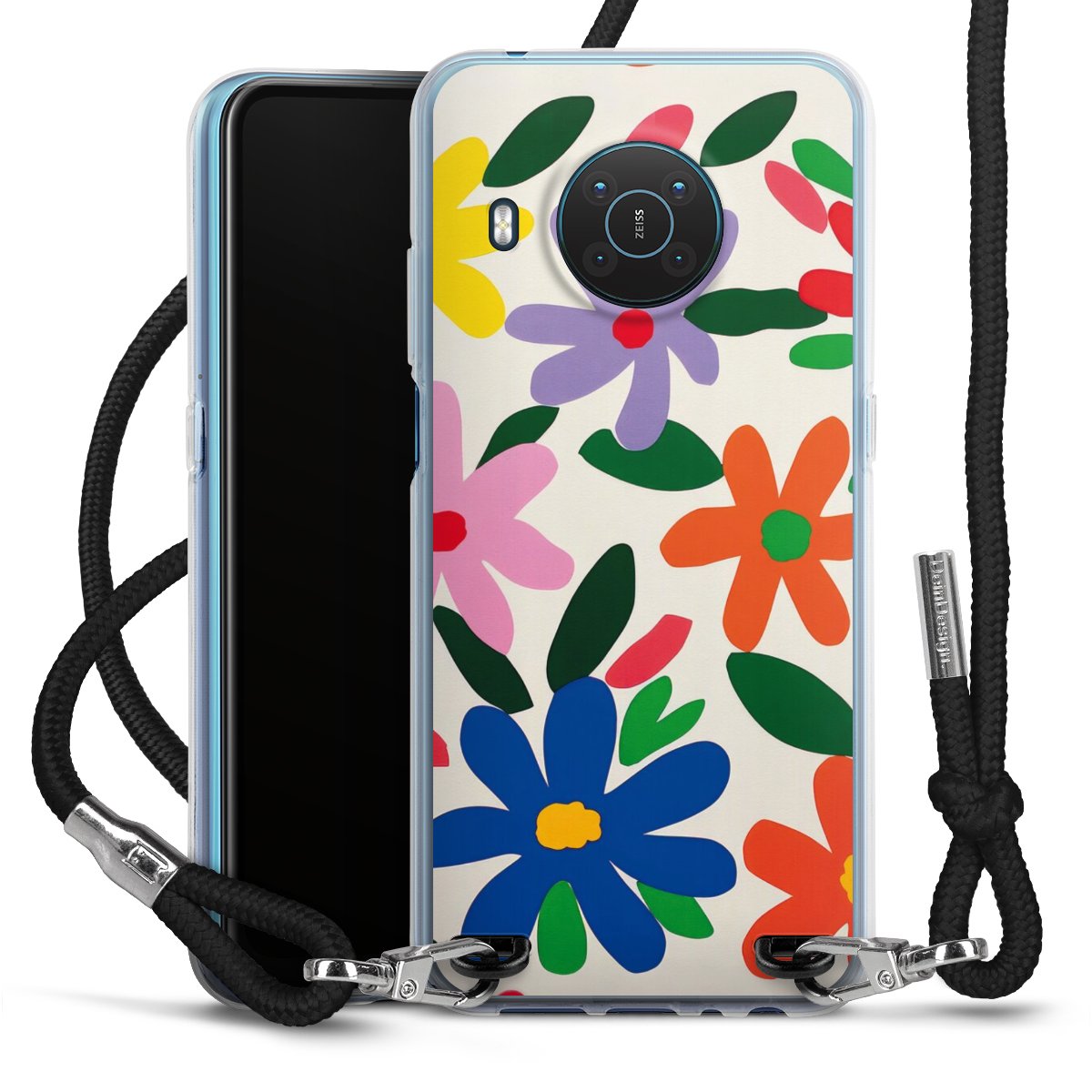 Keep your phone handy at all times, thanks to the flexible silicone case with a textile strap.