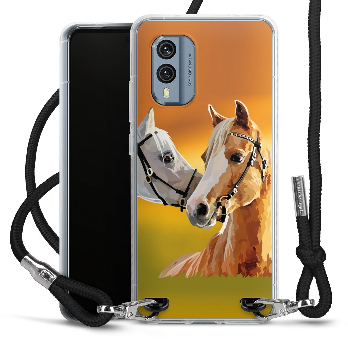 The flexible case is made from a high quality TPU material (thermoplastic Polyurethan). Thanks to its long-lasting and break resistant characteristics, the case is flexible yet consistent in form and has a great grip and feel. The textile strap made from Polyester gives a chic yet casual accent allowing you to carry your phone like a bag or necklace - a practical gadget perfect for your next adventure. The textile strap is about 1.70 meters long and the length can easily be adjusted through the knots. Our Carry Case is available in black, red, pink, grey, mustard, dark green and royal blue. We added a metal fastening to give the product an elegant touch. The ends of the textile strap are covered with metallic end caps to protect them against fraying.
