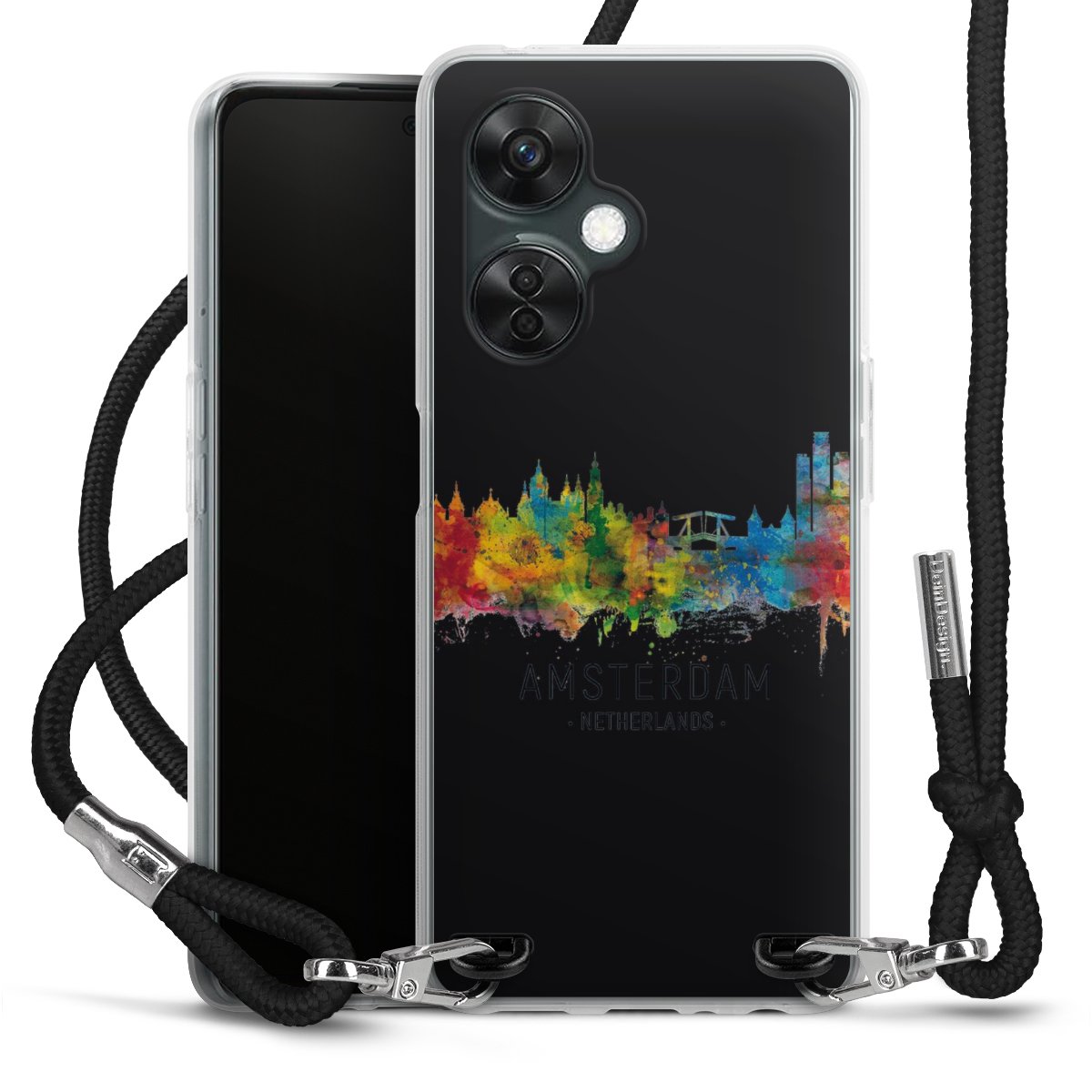 Keep your phone handy at all times, thanks to the flexible silicone case with a textile strap.