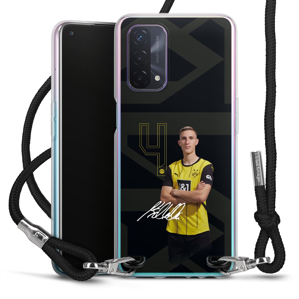 Keep your phone handy at all times, thanks to the flexible silicone case with a textile strap.