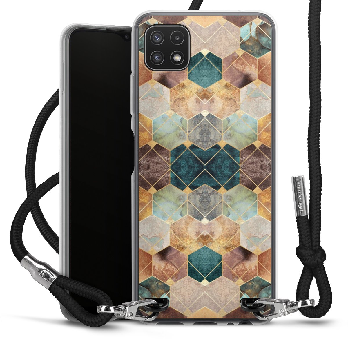 The flexible case is made from a high quality TPU material (thermoplastic Polyurethan). Thanks to its long-lasting and break resistant characteristics, the case is flexible yet consistent in form and has a great grip and feel. The textile strap made from Polyester gives a chic yet casual accent allowing you to carry your phone like a bag or necklace - a practical gadget perfect for your next adventure. The textile strap is about 1.70 meters long and the length can easily be adjusted through the knots. Our Carry Case is available in black, red, pink, grey, mustard, dark green and royal blue. We added a metal fastening to give the product an elegant touch. The ends of the textile strap are covered with metallic end caps to protect them against fraying.