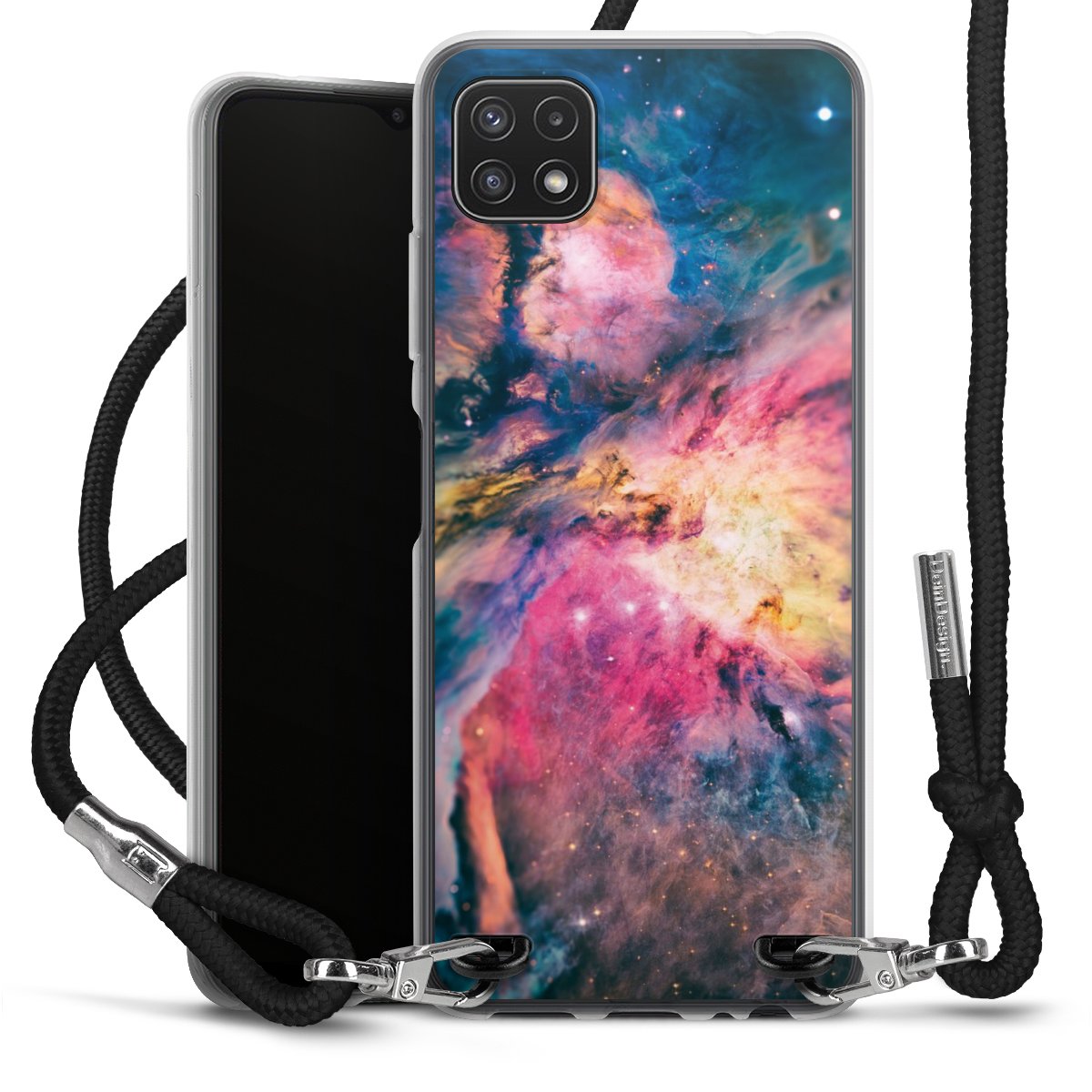 Keep your phone handy at all times, thanks to the flexible silicone case with a textile strap.