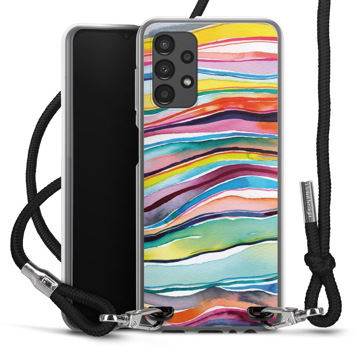 Keep your phone handy at all times, thanks to the flexible silicone case with a textile strap.