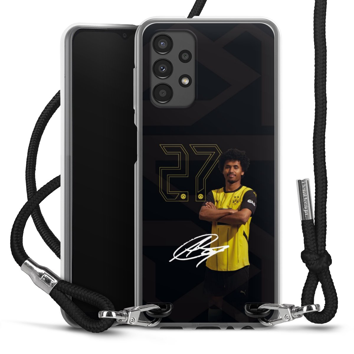 For our Carry Case we are using our advanced direct printing technology. The backside is fully printable, the frame is left unprinted. You can order the phone case without print, printed completely or also with a partial print. Choose one of our exclusive, pre-made shop designs or let your creativity shine and create your very own unique design with your pictures, overlays and text.